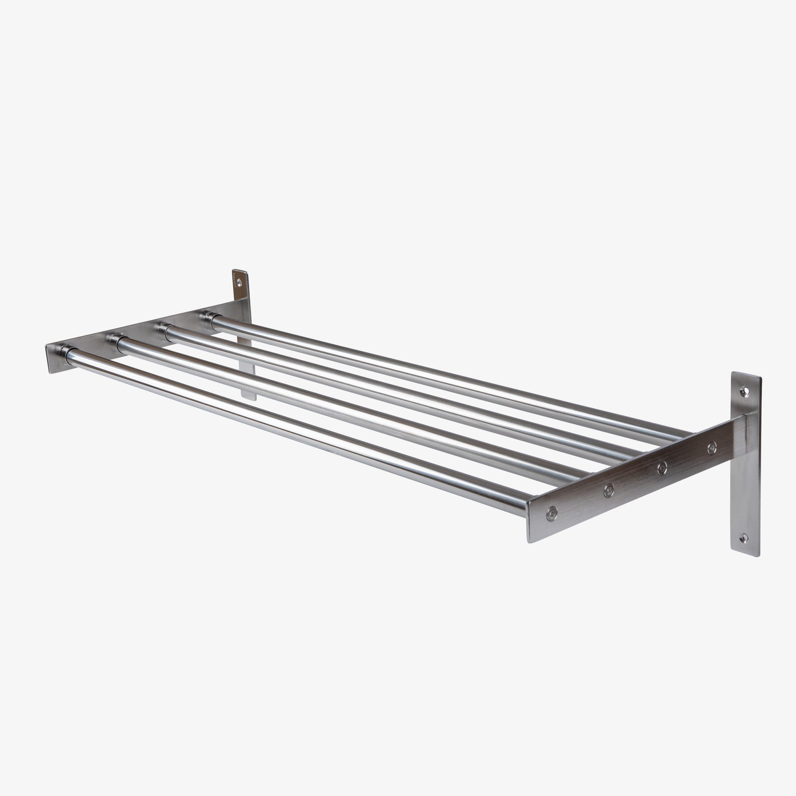 Stilren och funktionell hallhylla i 100% rostfritt stål, gjord för att kunna användas som skohylla eller hatthylla. Det går också att ha flera på höjden och bredden. Om hyllan ska användas som hatthylla finns krokar i rostfritt stål som kan köpas till. Plugg och skruvar kommer med hallhyllan, men tänk på att välja en plugg som passar din vägg vid uppsättning. Maxvikt: 10 kg.