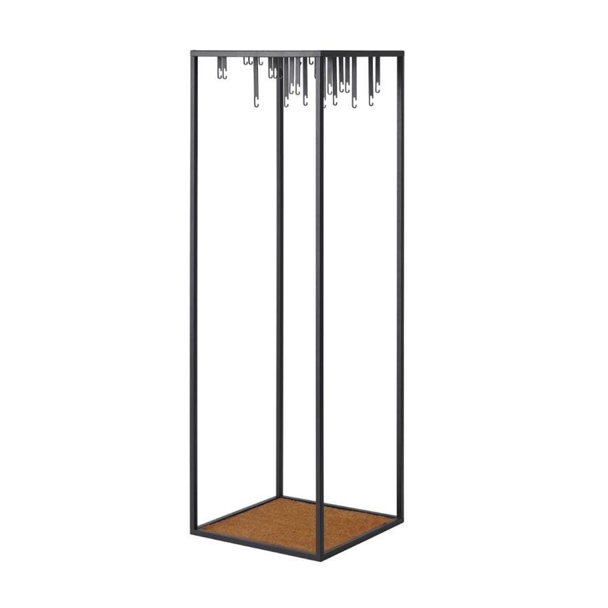 Klädhängare golv Atelier är designad av Alexander Lerviks, hans golvhängare är en grafiskt inramningsanordning för att visa snarare än att gömma kläder. En öppen garderob för användning som ett självständigt möbelelement i vilket utrymme som helst passar både i hallen eller sovrummet! ”Jag ville hänga en hel del kläder i ett litet utrymme och sedan kunna hitta en specifik jacka eller skjorta omedelbart. Jag ville också ha kläderna för att ge dem en arkitektonisk inhägnad med en tydlig och direkt grafisk identitet. ” Alexander medger gärna att hans mönster har sitt eget liv – garderoben har hittat sin väg in i modebutiker där den ramar in några sällsynta föremål, men även hemma, för att visa upp sina senaste fynd. Atelier Collection tar också upp en typologisk fråga: varför gömma kläderna i en garderob när du kunde använda dem som en ny inredningsarkitektur för att omforma något utrymme? Förutom i hemmet, passar Atelier Collection på kontoret, lobbyn eller restaurangen för att lägga till eleganta utrymmen för halsdukar, rockar och jackor med hattar ovanpå. Ta av dina löparskor eller stövlar och lämna dem på den mjuka coirmattan. Wall-versionen passar perfekt i alla korridorer med den extra fördelen av brädan att hålla telefoner, nycklar eller till och med konstverk. Återvinning: Lämna in dina gamla möbler till välgörenhet eller lämna in på återvinningscentral