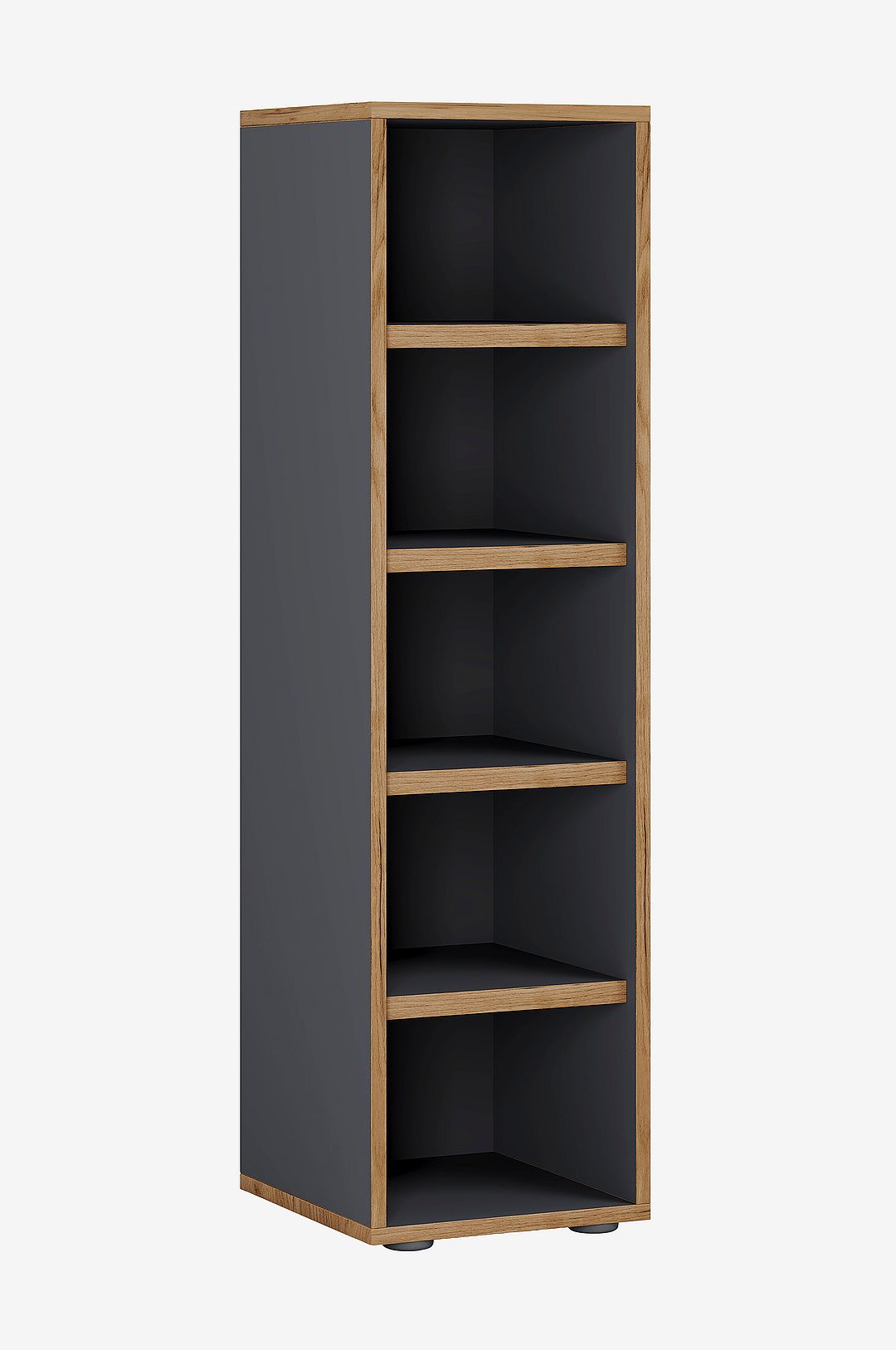 Höjdpunkter: – beslag av högkvalitativ metall – fem fack för upp till 5 par skor – mått på möbeln: ca H. 110 x B. 30 x D. 33 cm Skohyllan ”salia” är ett mirakel på liten yta. Den erbjuder en kombination av förvaringsutrymme och dekoration som ingen annan möbel. Fem fack ger tillräckligt med utrymme för fem par skor eller andra redskap. Byrån kan kombineras med andra möbler från serien ”vcm salia ”.