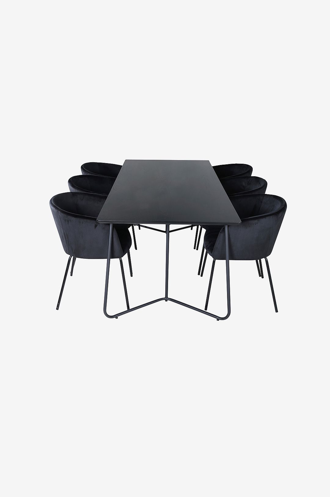 Venture Home – Matgrupp Petra med 6 st matstolar Berit – Svart – Matgrupp 6 personer – Från Homeroom