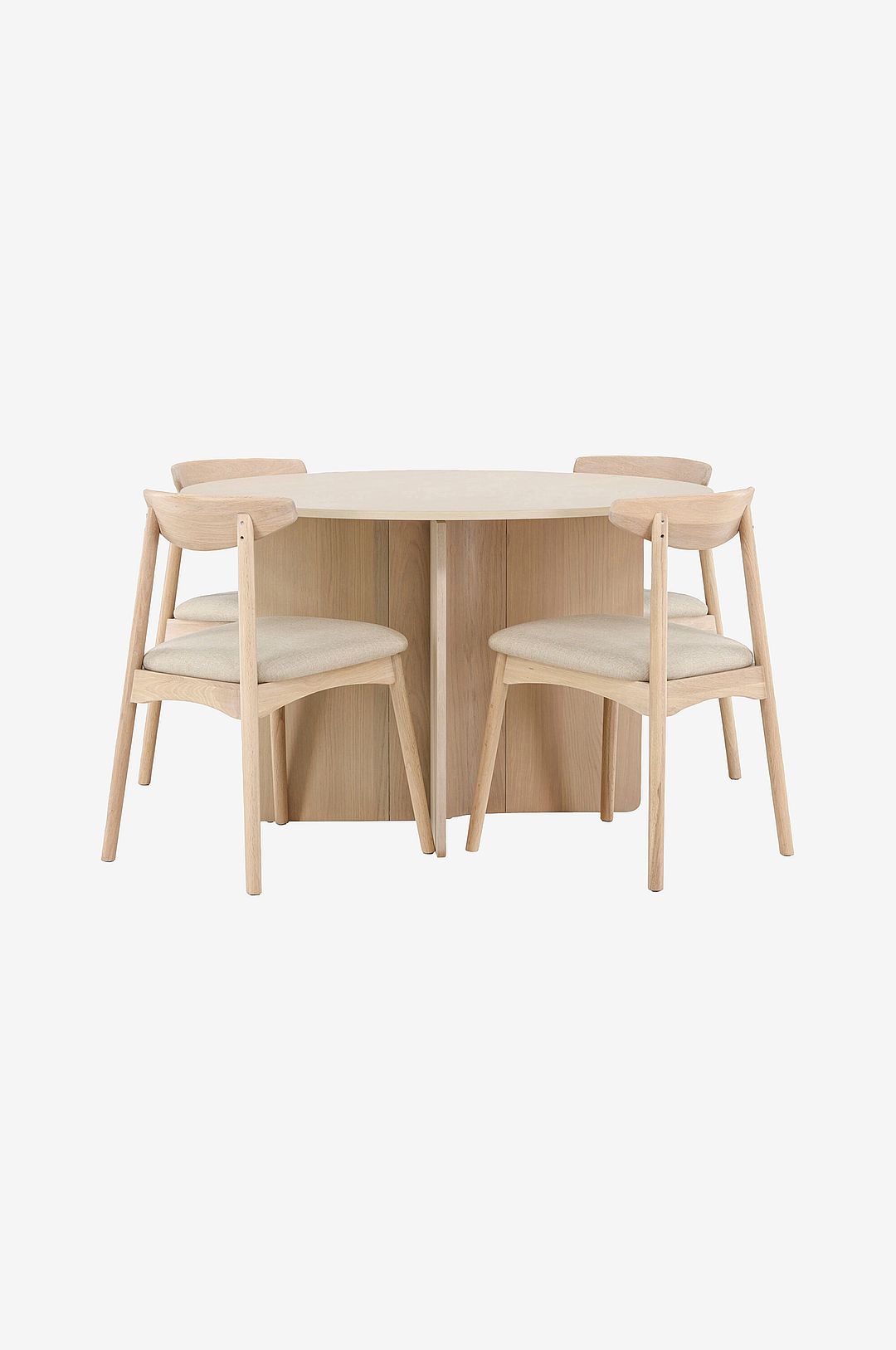 En modern kontrast som lyfter hela rummet. Tyresö matgrupp ø120 kombinerar det djärva bordet med skandinaviskt inspirerade ven-stolar – en perfekt balans mellan värme och elegans. Det runda bordet skapar en inbjudande atmosfär där alla kan se varandra, vilket gör det idealiskt för både vardagliga måltider och sociala sammankomster. Den rena designen och de noggrant utvalda materialen ger bordet ett utseende som känns både tidlöst och modernt. Stol: 54x47x80 bord: 120×76