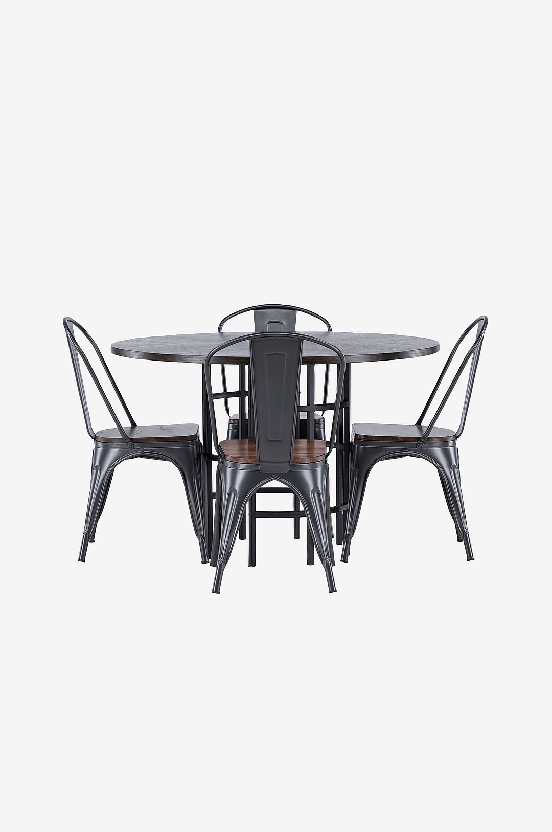 En genomtänkt matgrupp i modern design! Det runda matbordet copenhagen har en vacker bordsskiva i mdf med faner och ett dekorativt, cylinderformat underrede i metall. Här i snygg match med venture designs stolar från serien tempe. Stolen har en klassisk design av en rustik stol med lätt utsvängda ben i stål och en sits i trä. Sitt stilrent och lyxigt!