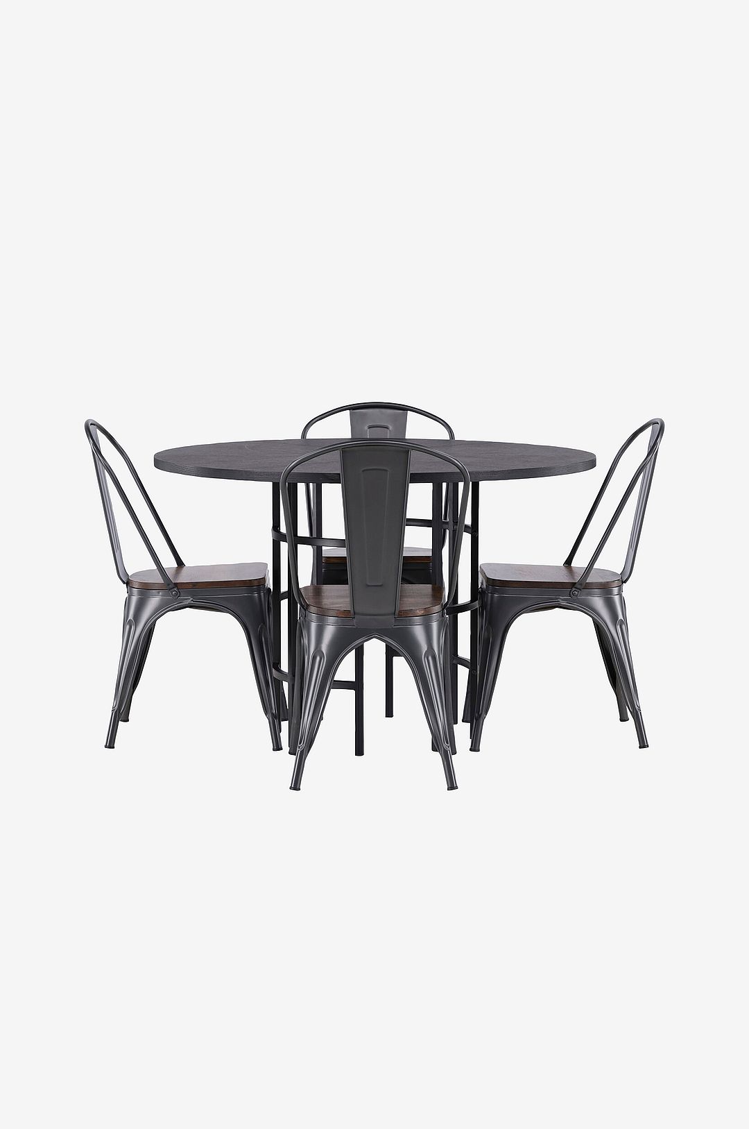 Venture Home – Matgrupp Copenhagen med 4st matstolar Tempe – Svart – Matgrupp 4 personer – Från Homeroom