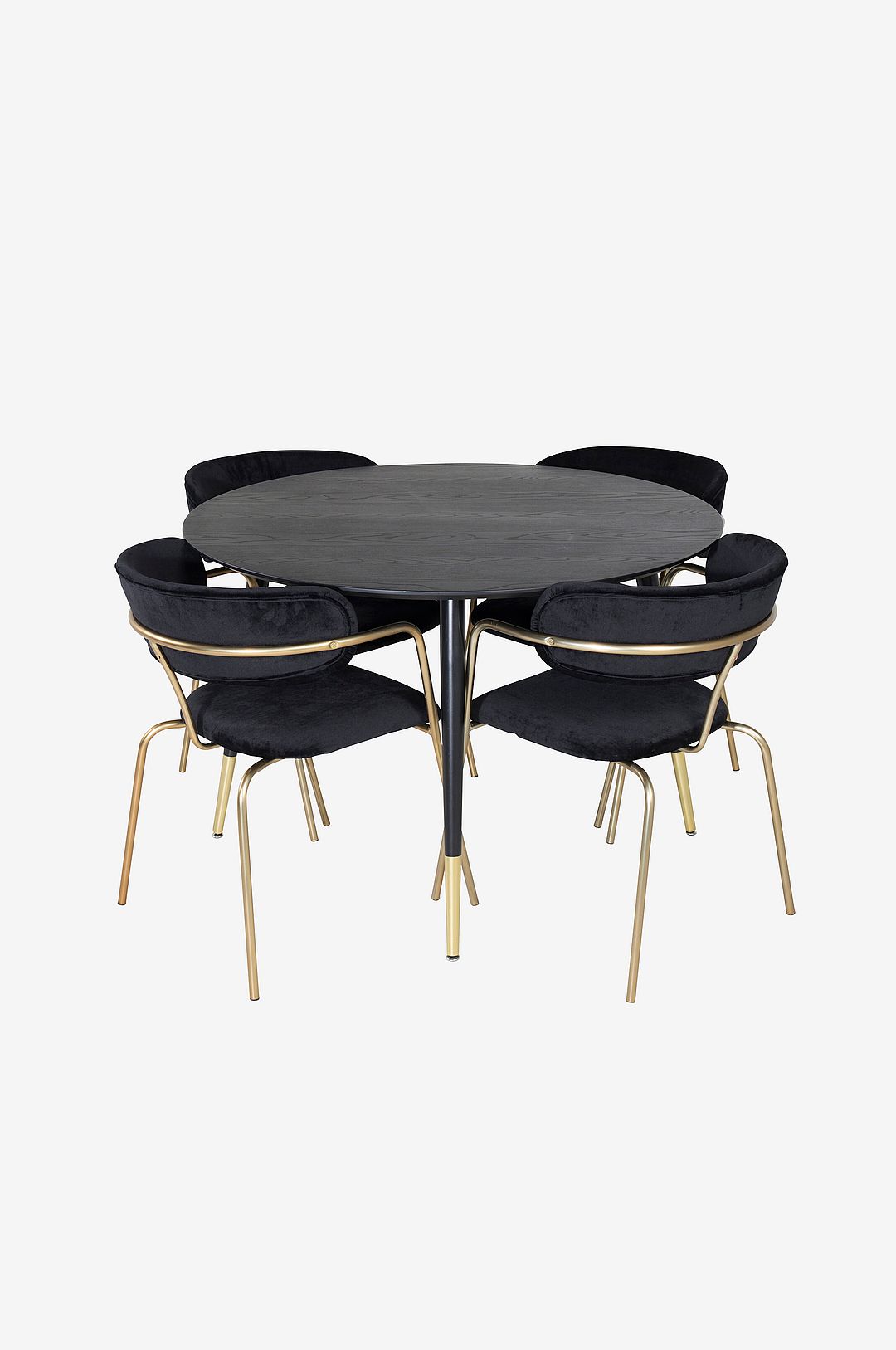 Venture Home – Matgrupp Dipp med 4st stolar Arrow – Svart – Matgrupp 4 personer – Från Homeroom