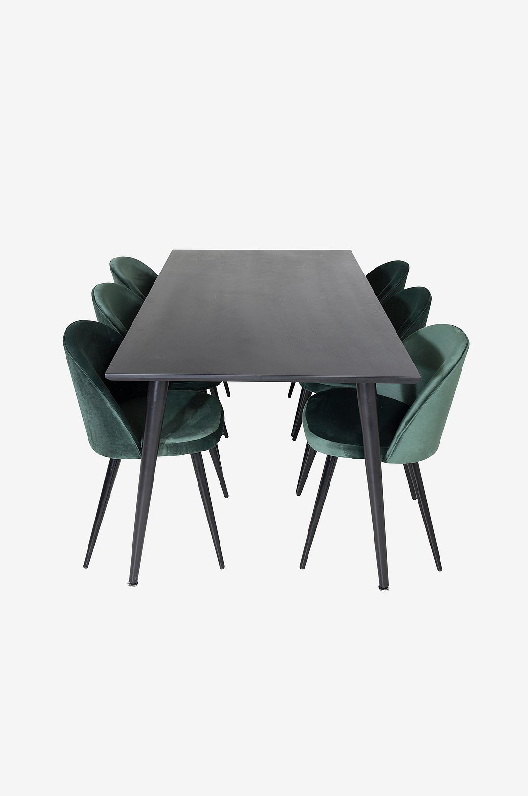 Låt den här vackert matchade matgruppen med modern känsla bli en naturlig samlingsplats i ditt hem. Matstolar Dipp har bra komfort och matbord Velvet gör att du slipper oroa dig över att alla ska få plats. Bord: Material Bordsskiva: MDF Material Bordsben: Stål Längd: 180 cm Bredd: 90 cm Höjd: 75,5 cm Stol: Material stolsben: Stål Höjd: 76,5 cm Bredd: 50 cm Djup: 57 cm