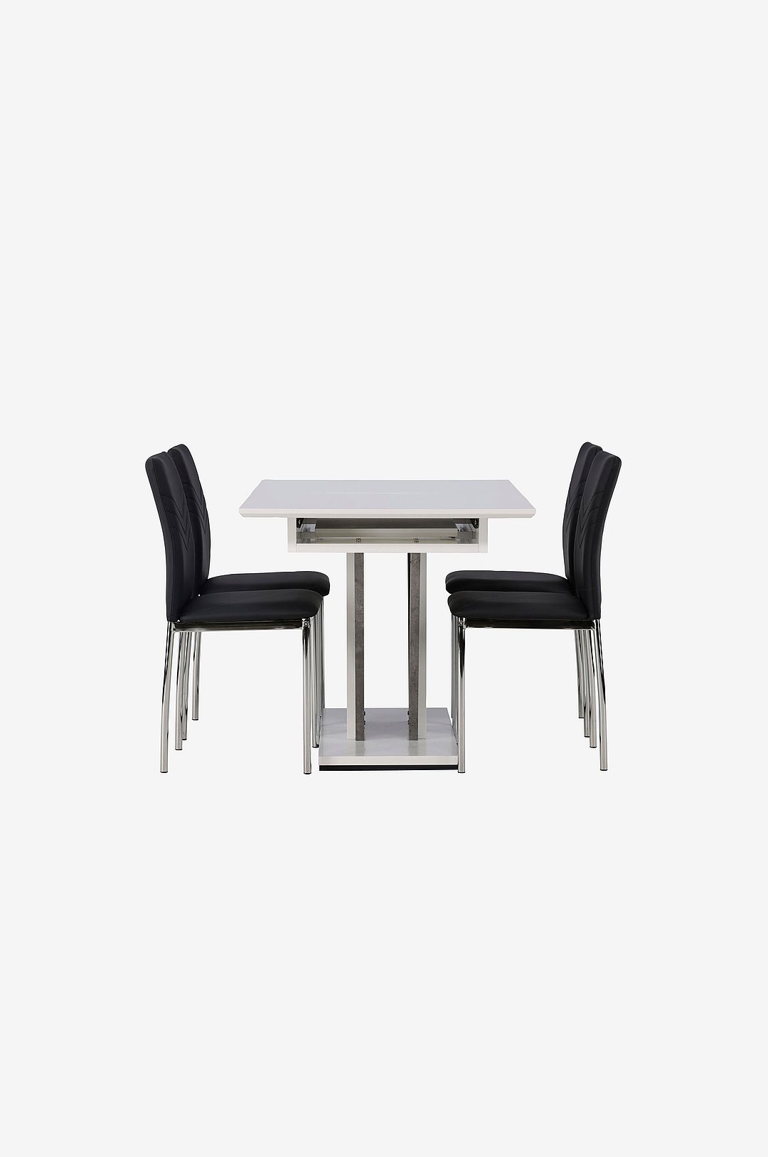 En underbar färgkombination – den här förlängningsbara matgruppen kommer i en stilren kulör, enkel design och tidlös utformning som anpassar sig efter dina önskemål! matbord disa har en rektangulär bordsskiva i mdf och ett center-placerat underrede i samma material samt två stommar i mdf. En av de fantastiska fördelarna med det här matbordet är dess förlängningsbara funktion, vilket gör att det anpassar sig smidigt till både små och stora sällskap. tillsammans med matbordet disa kommer matstolar från serien lily, med sin skandinaviska design och tidlösa nordiska former. Dessa stolar är enkla, men ändå otroligt vackra. Konstläderklädseln ger en kaxig känsla samtidigt som de kromade stolsbenen ger en industriell. Dekorsömmarna längs ryggstödet lägger till en stilfull detalj – här får du både en pampig matgrupp och en bekväm sittplats till framtida måltider!