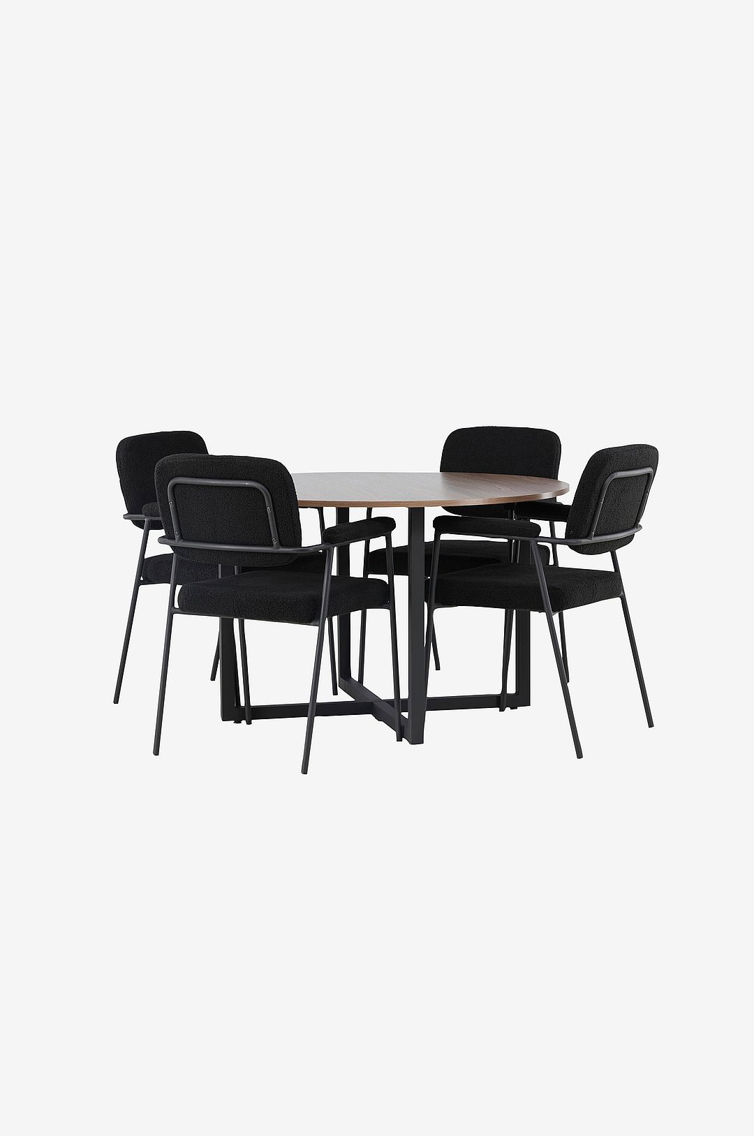 Välkommen hem till moderna former, mjuka material och en mysig känsla som genomsyrar hela vardagsrummet! här förenas tidlös design och inbjudande komfort för att skapa en perfekt plats för fantastiska måltider framöver. Det populära matbord durango får du en charmig mittpunkt att samlas kring. Den trendiga bordsskivan i mdf ger värme till inredningen och bordsbenen i stål bildar ett elegant kryss på golvet som ger stabilitet till hela konstruktionen. tillsammans med durango-bordet kommer matstolar från serien yesterday och förstärker känslan av skandinavisk design i ditt hem. Dessa läckra stolar erbjuder en helklädd sits i bouclétyg, vilket ger en sofistikerad och modern touch. De smala stolsbenen med integrerade armstöd i metall kompletterar perfekt stolen och skapar en balanserad helhet. njut av de långa, trivsamma middagsstunderna medan du slappnar av i den mjukt stoppade sitsen. Här får du inte bara en snygg matgrupp som höjer stilnivån i hemmet utan även slitstarka möbler som står sig över tid!