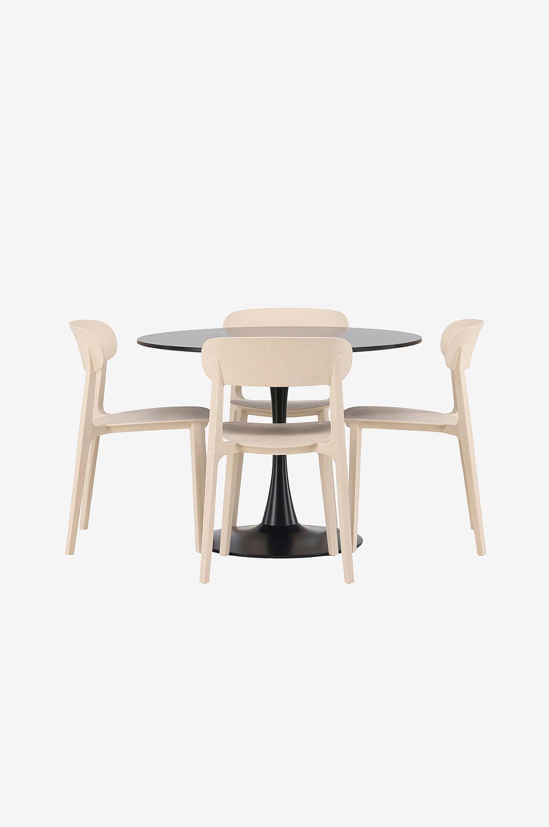 Venture Home – Matgrupp Glade med 4st matstolar Åstol – Svart – Matgrupp 4 personer – Från Homeroom