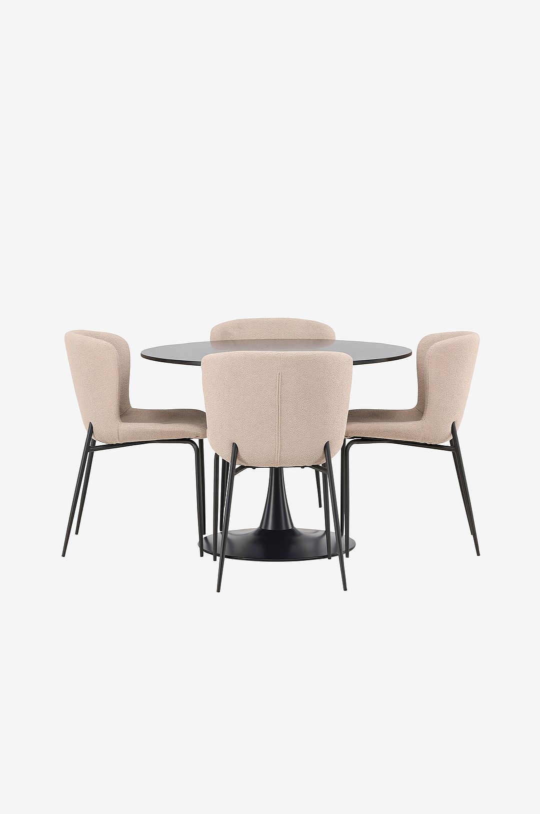 Venture Home – Matgrupp Glade med 4st matstolar Modesto – Svart – Matgrupp 4 personer – Från Homeroom