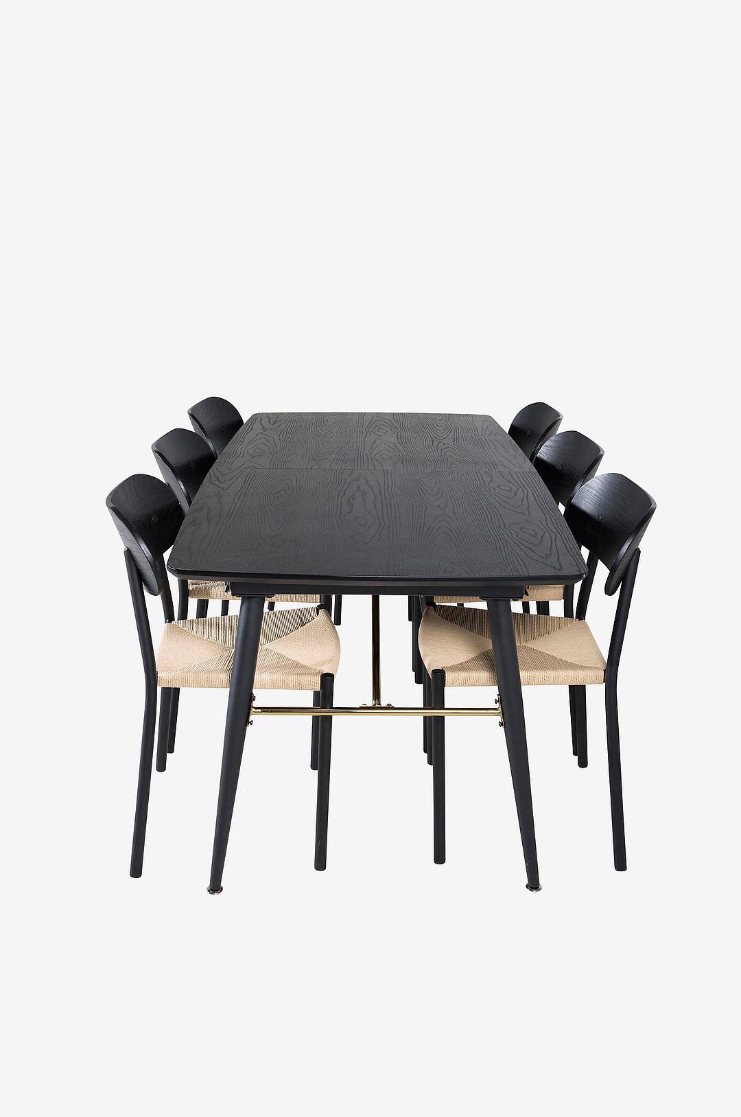 Venture Home – Matgrupp Guld med 6 stolar Polly – Svart – Matgrupp 6 personer – Från Homeroom