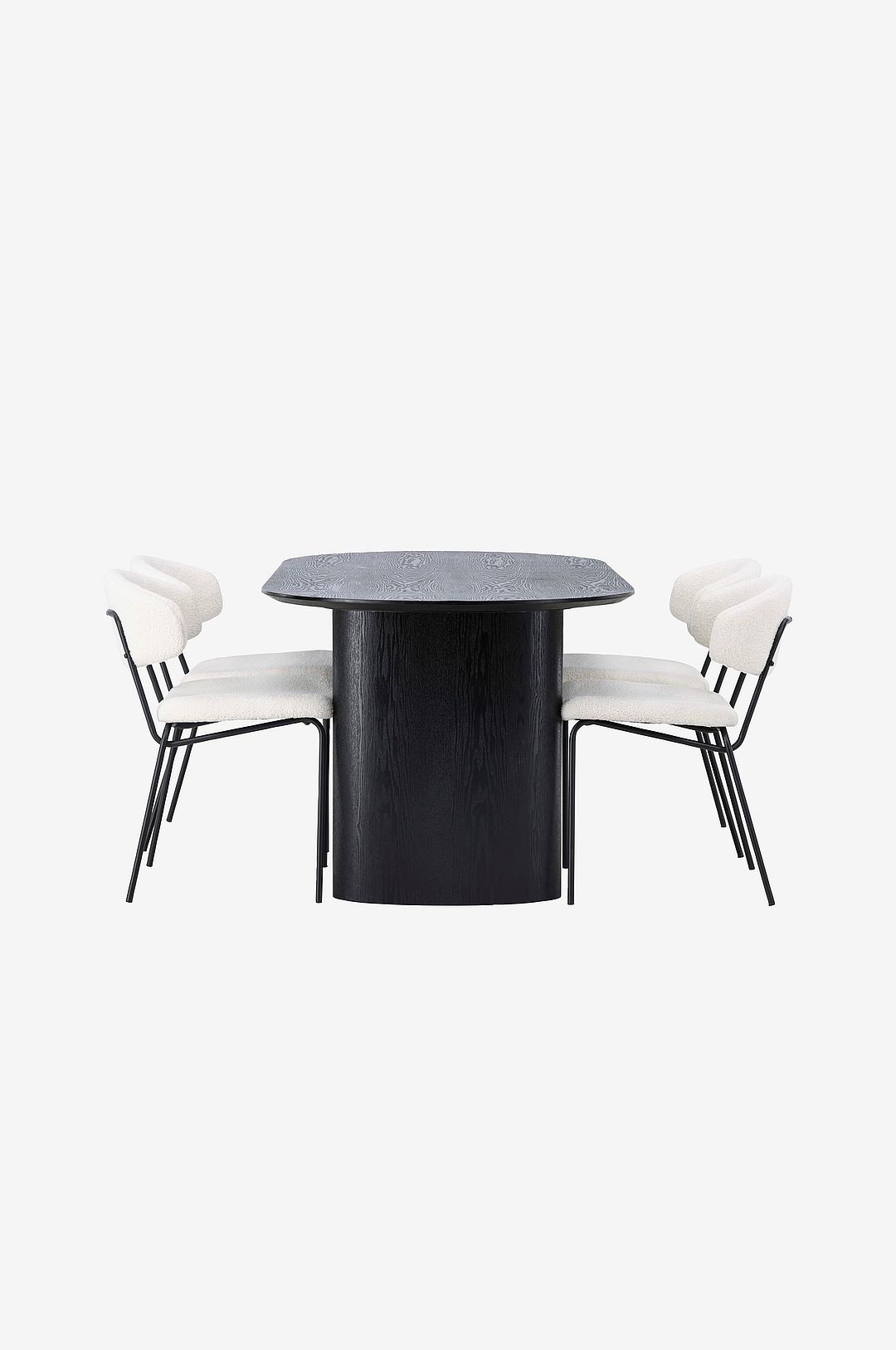 Inred vardagsrummet i moderna former! Det ovala matbordet isolde i stilfull kulör har en modern utformning med en oval bordskiva i mdf och robust stomme som ger ett stadigt intryck. Det levande materialet ger smakfull rörelse till blickfånget. Här i snygg kombination med matstolar från serien chico. Stolen är i boucletyg med en stoppad sits och ryggstöd för extra komfort. Benen är smala i stål som ger stolen en luftig känsla. Skapa en inbjudande atmosfär!