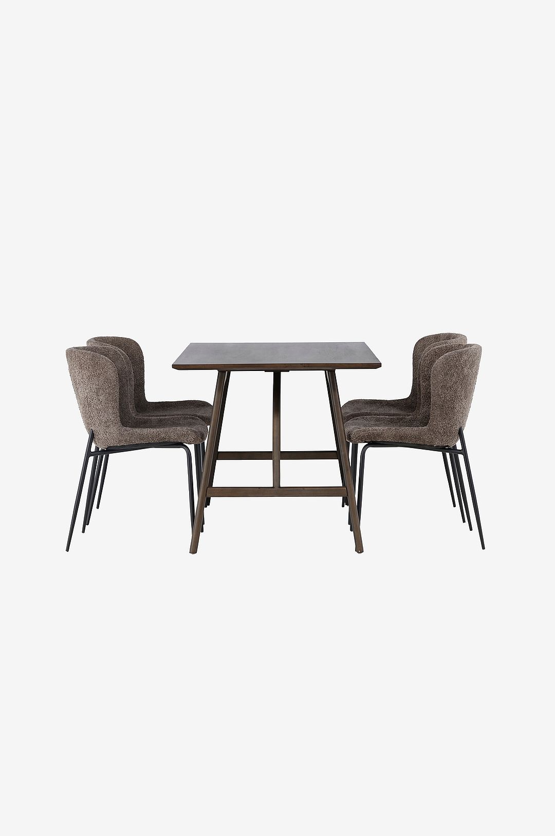 Mjuka former, jordnära toner och skandinavisk design är vad som summerar den här otroligt inbjudande matgruppen! det rektangulära matbord kaseidon är hjärtat i denna fantastiska matgrupp. Den tunna toppskivan i mdf har en slät yta och de lätt utsvängda bordsbenen i gummiträ ger en subtil touch av elegans och stabilitet. Bordet kommer i en modern kulör som snabbt passar in i det moderna hemmet. Runt bordet har vi matchat de fantastiskt bekväma matstolar från serien modesto. Dessa stolar är helklädda i ett vackert lurvigt bouclétyg som inte bara ser härligt ut utan också ger en mjuk och behaglig känsla. De minimalistiska stolsbenen i metall ger en modern touch och kompletterar perfekt bordets eleganta design. med den lätt rundade ryggen och den stoppade sittdynan erbjuder modesto-stolen också en underbar komfort under långa måltider. Här kan du slappna av, luta dig tillbaka och låta skratt och samtal flöda med nära och kära!