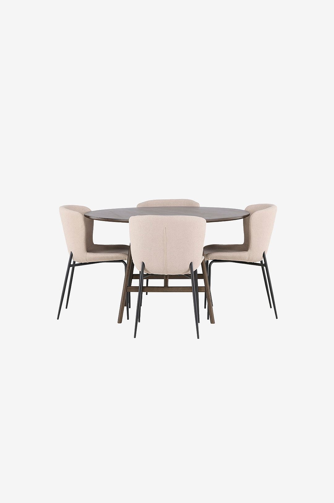 Få till den där perfekta känslan i ditt vardagsrum med en jordnära matgrupp som garanterar att ingen hamnar på kanten! venture designst runda matbord kaseidon har en modern design i genomgående kulör. Den runda bordsskivan har en matt finish och benen är lätt utsvängda. Tillverkat i robust mdf och gummiträ, vilket ger ett stabilt och pålitligt bord. här i perfekt kombination med venture designs charmiga matstolar från serien modesto. Stolarnas krämiga färg i boucletyg kompletterar perfekt bordets kulör. Stolarna är inte bara en fröjd för ögat utan också bekväma att sitta på. Med sina metallben ger de en extra touch av elegans och kontrast till matgruppen. denna underbara matgrupp är skapad för att du och dina gäster ska kunna njuta av långa och trevliga middagar utan att någon hamnar på kanten. Dess design och mjuka färger skapar en inbjudande atmosfär där du kan låta samtalen flöda och umgås med dina nära och kära!