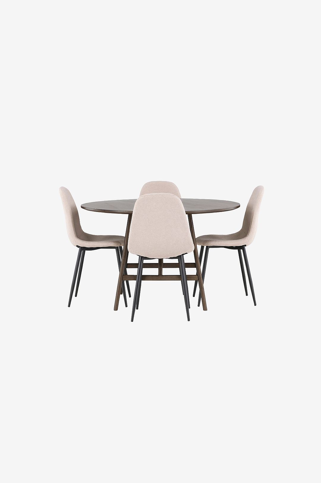 Välkommen till en ny nivå av stil och komfort med den här underbara matgruppen i jordnära kulörer! venture designst fantastiska runda matbord kaseidon är designat för att komplettera det stilrena hemmet och skapa en atmosfär av elegans och avkoppling. Med en rund bordsskiva i stilfull kulör som har en matt finish och lätt utsvängda ben med en stabiliserande stomme, tillverkat i mdf och gummiträ, är detta bord både vackert och hållbart. tillsammans med matstolarna från polar-serien skapas den perfekta färgkombinationen för ett inbjudande och charmigt vardagsrum. Stolarna är klädda i lyxigt boucletyg som ger en omedelbar känsla modern komfort. Med sina mörka stolsben förstärks kontrasten och ger en stilren touch till matgruppen. det ska kännas skönt att komma hem och njuta av härliga måltider tillsammans med nära och kära. Slå dig ner, sitt bekvämt och låt skratt och samtal flöda fritt – här hamnar ingen på kanten!