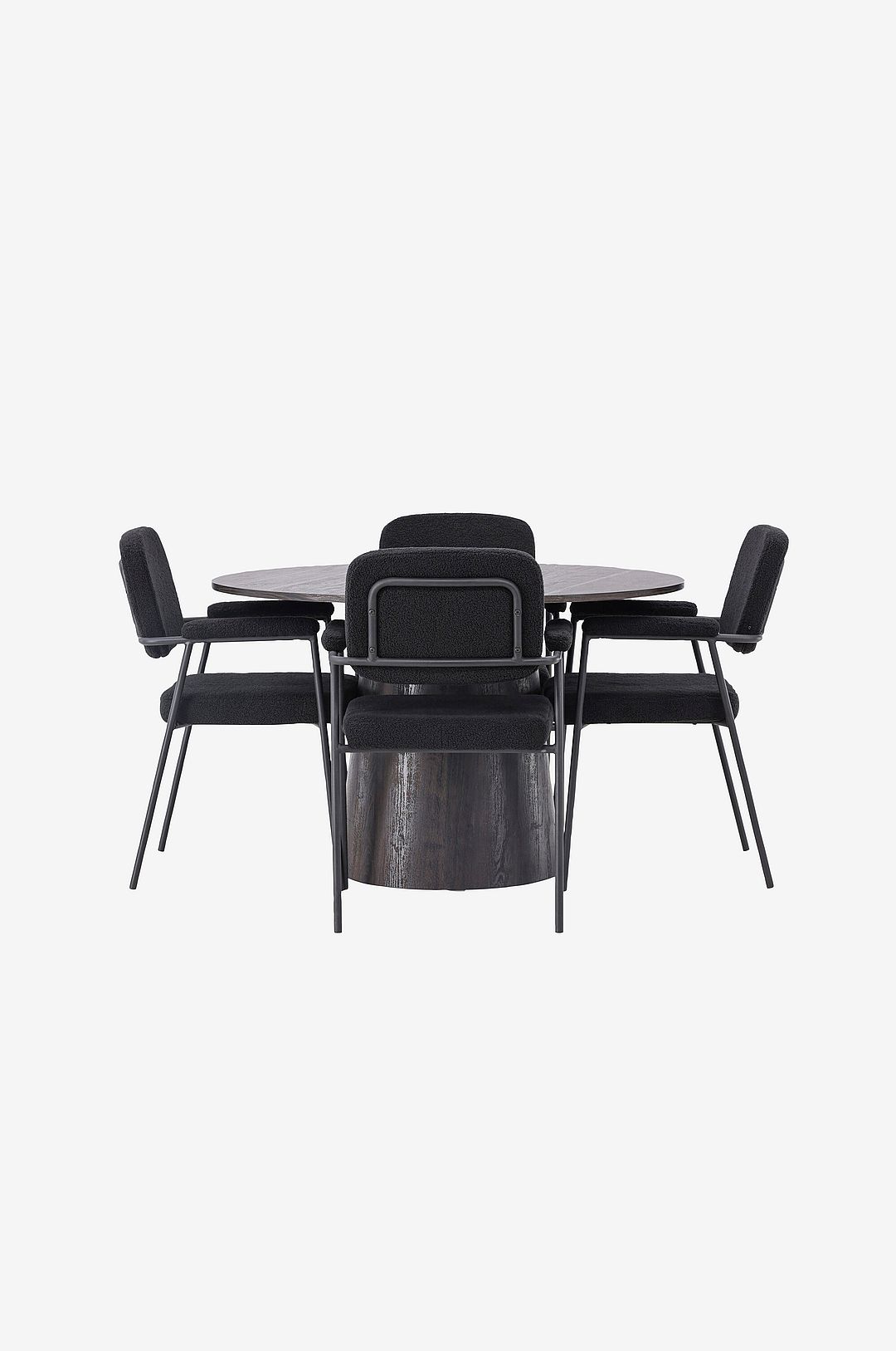 Venture Home – Matgrupp Lanzo med 4st stolar Yesterday – Svart – Matgrupp 4 personer – Från Homeroom