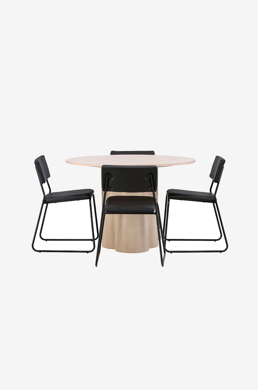 Den perfekta kombinationen av minimalism och robust design! Matbordet från serien olivia har en genomgående helhetsdesign i putsad mdf med en tunn, rund toppskiva och tre cylinderformade ben som sitter samlade under bordets mitt. Kulören har en lätt täcknad på den fanerade skivan vilket synliggör materialets mönster som ger liv och rörelse till bordet. Här tillsammans med 4st moderna matstolar från serien kenth. Stolen har en rygg och sits i polyuretanskinn och polyester samt dekorativt smala stolsben i järn. Skapa en lyxig mittpunkt i hemmets hjärta!