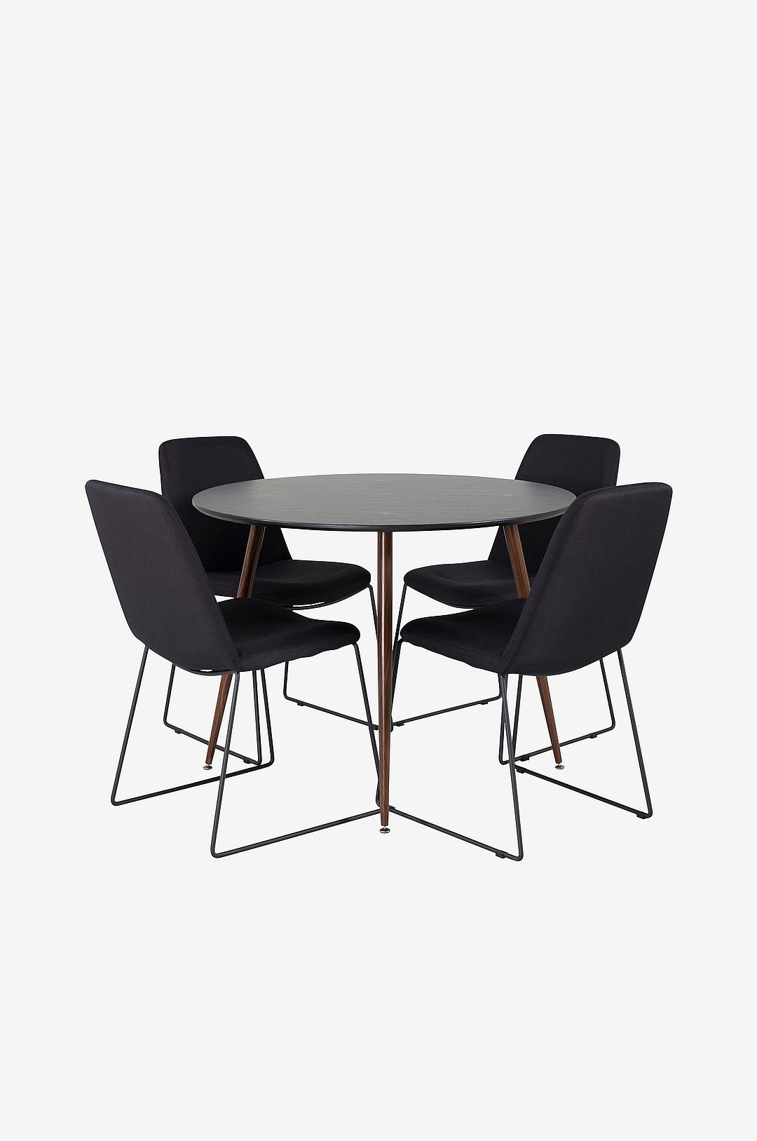 Venture Home – Matgrupp Plaza med 4st matstolar Muce – Svart – Matgrupp 4 personer – Från Homeroom