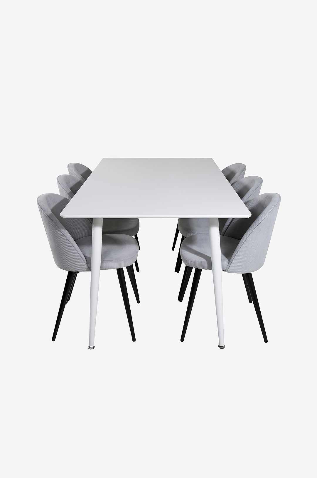 Venture Home – Matgrupp Polar med 6st matstolar Velvet – Vit – Matgrupp 6 personer – Från Homeroom