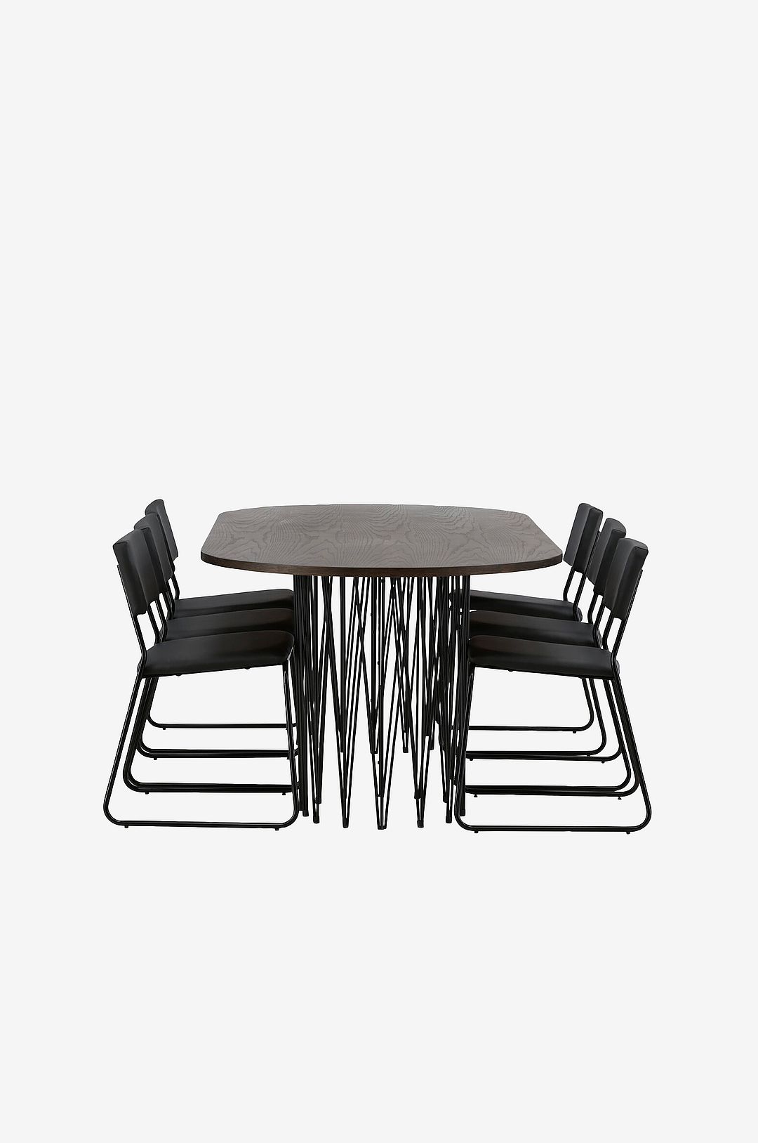 Venture Home – Matgrupp Stone med 6st stolar Kenth – Brun – Matgrupp 6 personer – Från Homeroom