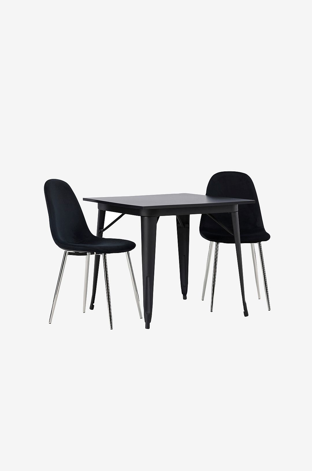 Sitt bekvämt i venture designs underbara matgrupp för två! Venture designs kvadratiska matbord tempe har en nätt storlek och trendig, skandinavisk utformning. Tillverkad med en bordsskiva i mdf och bordsben i metall. Här i modern kombination med matstolar från serien polar. Stolen har en helklädd design med ben i kromad metall, en lätt rundad rygg och sits i smäckert sammetstyg med mjuk stoppning för extra komfort. Lika stilren som bekväm!
