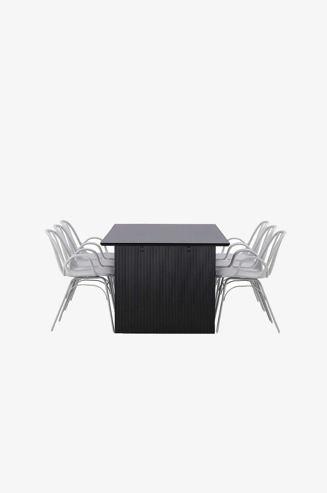 En genomgående, stilfull matgrupp som står sig över tid! Vail matbord har raka nordiska former och är tillverkat i slitstarkt mdf – lika snyggt som praktiskt helt enkelt. Bordsskivan är tunn i en rektangulär utformning och balanserar på två bastanta träskivor som utgör underredet. Här i perfekt match med dem moderna matstolar från serien dyrön. Stolen är lika stilren som praktisk, tillverkad i plast och stål. Sitsen har integrerade armstöd och en ribbad design i den lätt rundade ryggen. Bjud in till flera sociala stunder framöver!