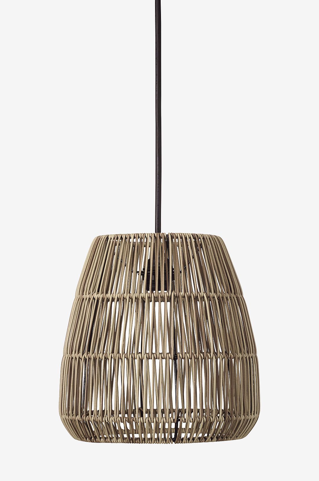 Saigon, en utomhus skärm i konstrotting. Konstrotting är ett tåligt material som klarar väder och vind. Den flätade strukturen skapar ett vackert ljusspel. Kombineras med Flex Out takupphäng för utomhusbruk, denna ingår ej för denna produkt och måste köpas till separat. Höjd 30 cm. Diameter 28 cm.