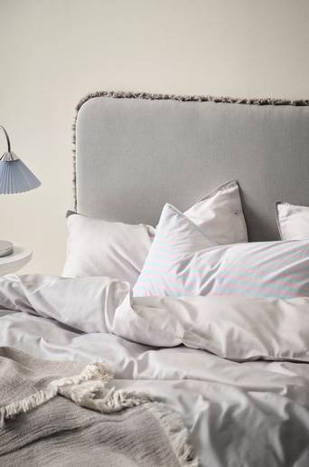 ÄNGHOLMEN är en vadderad sänggavel, klädd med rustikt linne och smyckad med en frans längs kanten. Stommen är av FSC-märkt furu och plywood som kompletterats med mjuk skumfyllning. Tyget är slitstarkt med Martindale på ca 10000. Överdraget är ej avtagbart. Den vadderade gaveln är behaglig att sitta och luta sig mot samtidigt som den skyddar väggen bakom sängen som lätt kan bli sliten och ful. Sänggaveln monteras mot väggen bakom din säng eller resårmadrass. Väggfäste medföljer. Vill du känna på klädselns kvalitet och se om färgen passar perfekt i ditt hem? Beställ tygprover så kan du fundera på det i lugn och ro. Färg 01 & 03: Tyget heter: A121B LINEN med artikelnummer: 1730629 (skriv i sökfältet). Färg 02: Tyget heter: A006 LINEN med artikelnummer: 1732100 (skriv i sökfältet). Produkten är certifierad med Forest Stewardship Council (FSC), vilket innebär att den innehåller trä som avverkats i ett ansvarsfullt skogsbruk som tar hänsyn till människor och miljö. Licensnummer & testinstitut: BV-COC-142544 Bureau Veritas Klädsel: Lin. Stomme: Plywood, Furu. Fyllning: Skum, Polyestervadd. Längd/Djup: 8.0 X Bredd: 182.0 X Höjd: 121.0 cm. Bäddmått: 180 cm. Levereras omonterad. Antal paket: 1. Tips/råd: Om du har ett känsligt golv rekommenderar vi att du sätter möbeltassar eller annat skydd på kontaktytorna mot golvet.