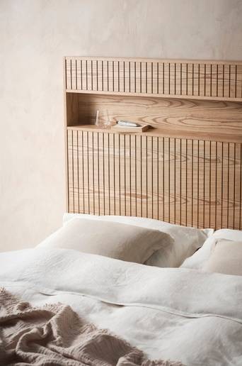Sänggavel av askfaner med urfrästa spår som ger känslan av ribbor, intrycket du får är en mix av trä och retro. Sänggaveln är djup och har ett praktiskt fack där du kan förvara din bok, mobiltelefon eller ett glas vatten. Sänggaveln är fristående och placeras mellan sängen och väggen. Väggfäste medföljer. Material: MDF och askfaner. Upphängningslist av furu. Storlek: Bredd 165 cm, höjd 150 cm, djup 15 cm. Skötselråd: Torkas av med lätt fuktad trasa. Tips/råd: Uppdatera sängkammaren med EIRA och ett väl valt överkast så känns rummet som nytt.