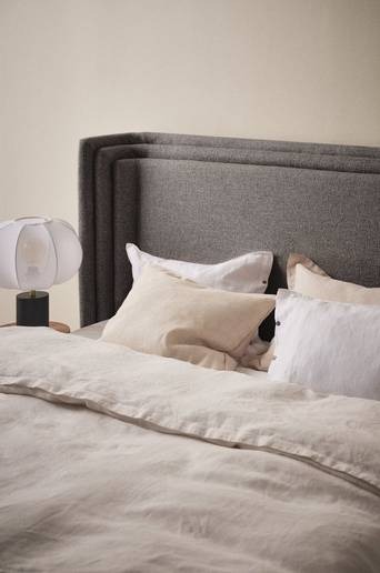 LAIER är en vadderad sänggavel, klädd med lite grövre vävt tyg med snygg, melerad effekt. Sänggaveln ger illusionen av att vara tredelad och den är mjukt rundad i sidorna, vilket ger en mysig och fin inramning. Den vadderade gaveln är dessutom behaglig att sitta och luta sig mot, både vad gäller en stunds läsning på kvällen och kaffe på sängen nästa morgon. Stommen är av FSC-märkt furu och plywood som kompletterats med mjuk skumfyllning. Tyget är slitstarkt med Martindale på 20000. Sänggaveln monteras mot väggen bakom din resårbotten. Överdraget är ej avtagbart. Väggfäste medföljer. Produkten är certifierad med FSC vilket innebär att den består av trä som är avverkat från ett ansvarsfullt skogsbruk som tar hänsyn till människor och miljö. Licensnummer & testinstitut: BV-COC-142544 Bureau Veritas. Material: Klädsel: 79% polyester, 10% bomull, 5% lin, 4% akryl, 2% ull. Fyllning: Skum av polyuretan och polyester. Stomme: Furu och plywood. Storlek: Bredd 210 cm, höjd 119 cm, djup 34 cm. Passar en säng/resårbotten som är 180 cm bred. Skötselråd: Dammsugning. Fläckar tas bort med lätt fuktad trasa. Tips/råd: Komplettera med ett nytt överkast och mängder av mjuka kuddar, så får du en säng som är både snygg och bekväm, dygnet runt.