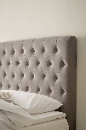 Fristående sänggavel klädd med ett enfärgat tyg som är mjukt och behagligt. De djuphäftade, klädda knapparna ger en lyxig känsla. Stommen är av plywood och massivt trä som vadderats med skumgummifyllning. Väggfäste ingår, en ramp på baksidan gör det enkelt att hänga upp gaveln om du vill det. Du kan också klämma fast sänggaveln mellan sängen och väggen. Viss monterings krävs. Monteringsanvisning medföljer. Vill du känna på klädselns kvalité och se om färgen passar perfekt hemma hos dig? Beställ tygprov så kan du fundera i lugn och ro. Tyget heter ENJOY med artikelnummer: 1768649 (skriv i sökfältet). Material: Tyg: 93% polyester och 7% polyamid. Stomme: Plywood och trä. Fyllning: Skum. Storlek: Bredd 120 cm. Höjd 122 cm. Djup 10 cm. Skötselråd: Dammsugning. Fläckar tas bort med lätt fuktad trasa. Tips/råd: Komplettera med ett matchande överkast och mjuka sköna kuddar så blir hela sängen som ny.
