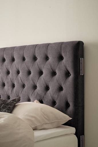 Fristående sänggavel klädd med ett enfärgat tyg som är mjukt och behagligt. De djuphäftade, klädda knapparna ger en lyxig känsla. Stommen är av plywood och massivt trä som vadderats med skumgummifyllning. Väggfäste ingår, en ramp på baksidan gör det enkelt att hänga upp gaveln om du vill det. Du kan också klämma fast sänggaveln mellan sängen och väggen. Viss monterings krävs. Monteringsanvisning medföljer. Vill du känna på klädselns kvalité och se om färgen passar perfekt hemma hos dig? Beställ tygprov så kan du fundera i lugn och ro. Tyget heter ENJOY med artikelnummer: 1768649 (skriv i sökfältet). Material: Tyg: 93% polyester och 7% polyamid. Stomme: Plywood och trä. Fyllning: Skum. Storlek: Bredd 120 cm. Höjd 122 cm. Djup 10 cm. Skötselråd: Dammsugning. Fläckar tas bort med lätt fuktad trasa. Tips/råd: Komplettera med ett matchande överkast och mjuka sköna kuddar så blir hela sängen som ny.