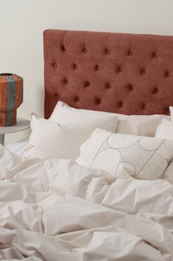 Fristående sänggavel klädd med ett enfärgat tyg som är mjukt och behagligt. De djuphäftade, klädda knapparna ger en lyxig känsla. Stommen är av plywood och massivt trä som vadderats med skumgummifyllning. Väggfäste ingår, en ramp på baksidan gör det enkelt att hänga upp gaveln om du vill det. Du kan också klämma fast sänggaveln mellan sängen och väggen. Viss monterings krävs. Monteringsanvisning medföljer. Vill du känna på klädselns kvalité och se om färgen passar perfekt hemma hos dig? Beställ tygprov så kan du fundera i lugn och ro. Tyget heter ENJOY med artikelnummer: 1768649 (skriv i sökfältet). Material: Tyg: 93% polyester och 7% polyamid. Stomme: Plywood och trä. Fyllning: Skum. Storlek: Bredd 160 cm. Höjd 122 cm. Djup 10 cm. Skötselråd: Dammsugning. Fläckar tas bort med lätt fuktad trasa. Tips/råd: Komplettera med ett matchande överkast och mjuka sköna kuddar så blir hela sängen som ny.