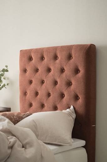 Fristående sänggavel klädd med ett enfärgat tyg som är mjukt och behagligt. De djuphäftade, klädda knapparna ger en lyxig känsla. Stommen är av plywood och massivt trä som vadderats med skumgummifyllning. Väggfäste ingår, en ramp på baksidan gör det enkelt att hänga upp gaveln om du vill det. Du kan också klämma fast sänggaveln mellan sängen och väggen. Viss monterings krävs. Monteringsanvisning medföljer. Vill du känna på klädselns kvalité och se om färgen passar perfekt hemma hos dig? Beställ tygprov så kan du fundera i lugn och ro. Tyget heter ENJOY med artikelnummer: 1768649 (skriv i sökfältet). Material: Tyg: 93% polyester och 7% polyamid. Stomme: Plywood och trä. Fyllning: Skum. Storlek: Bredd 90 cm. Höjd 122 cm. Djup 10 cm. Skötselråd: Dammsugning. Fläckar tas bort med lätt fuktad trasa. Tips/råd: Komplettera med ett matchande överkast och mjuka sköna kuddar så blir hela sängen som ny.