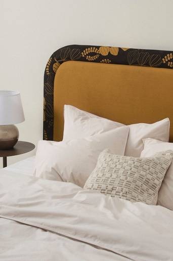 VÅGHOLMEN är en vadderad sänggavel, klädd med enfärgat tyg och en välmatchad, vadderad ram runt om i läckert blommigt tyg. Stommen är av FSC-märkt furu och plywood som kompletterats med mjuk skumfyllning. Tyget är slitstarkt med Martindale på 45000. Överdraget är ej avtagbart. Den vadderade gaveln är behaglig att sitta och luta sig mot samtidigt som den skyddar väggen bakom sängen som lätt kan bli sliten och ful. Sänggaveln monteras mot väggen bakom din säng eller resårmadrass. Väggfäste medföljer. Produkten är certifierad med FSC vilket innebär att den består av trä som är avverkat från ett ansvarsfullt skogsbruk som tar hänsyn till människor och miljö. Licensnummer & testinstitut: BV-COC-142544 Bureau Veritas. Material: Klädsel: 100% polyester. Skum och polyestervadd. Stomme: Furu och plywood. Storlek: Bredd 181 cm, höjd 120 cm, djup 7 cm. Passar en säng/resårbotten som är 180 cm bred. Skötselråd: Dammsugning. Fläckar tas bort med lätt fuktad trasa. Tips/råd: Komplettera med ett nytt överkast och mängder av mjuka kuddar, så får du en säng som är både snygg och bekväm, dygnet runt.