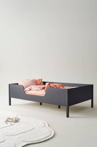 Sängram med stomme av massiv furu, sidor av MDF och ribbotten av obehandlad plywood. Allt trä i sängen är FSC-märkt, det vill säga furu, plywood och MDF. Färgen är vattenbaserad. Sängen har mysig inramning med hög kant runt om. Ena långsidan har en sänkt kant så de mindre barnen kan klättra i och ur själva. Med en mysig säng blir det roligare att gå och lägga sig, för vem vill ha tråkigt? Komplettera med madrass, madrass ingår ej. Viss montering krävs. Monteringsanvisning medföljer. Produkten är certifierad med FSC vilket innebär att den består av trä som är avverkat från ett ansvarsfullt skogsbruk som tar hänsyn till människor och miljö. Licensnummer & testinstitut: SAI-COC-002431 SAI Global. Material: Furu, MDF och plywood. Storlek: Bredd 126 cm, längd 212 cm, höjd 64 cm, sidans höjd vid öpppningen 41 cm. Mått från kanten ned till ribbotten 31 cm, vid öppningen 8,5 cm. Bäddmått 120×200 cm. Maxvikt: 90 kg. Skötselråd: Torkas av med lätt fuktad trasa. Tips/råd: Med många kuddar och ett mjukt överkast blir sängen en myshörna dagtid.