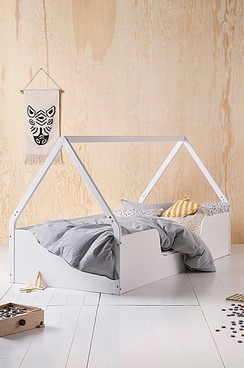 Sängram med stomme av massiv furu, sidor av MDF och ribbotten av obehandlad plywood. Både furu och MDF är FSC-märkt. Färgen är vattenbaserad. Ena långsidan har en sänkt kant så de små barnen kan klättra i/ur själva. Med en mysig säng blir det roligare att gå och lägga sig, för vem vill ha tråkigt? Med många kuddar och ett mjukt överkast blir det en mysig hörna dagtid. Madrass/resårmadrass ingår ej. Produkten är certifierad med Forest Stewardship Council (FSC), vilket innebär att den innehåller trä som avverkats i ett ansvarsfullt skogsbruk som tar hänsyn till människor och miljö. Licensnummer & testinstitut: SAI-COC-002431 SAI Global Material: Furu MDF Plywood. Storlek: Bredd 96 cm, längd 206 cm, sidans höjd 40 cm, sidans höjd vid öppningen 17 cm, totalhöjd 110 cm. Dimension stommen för taket 5×5 cm. Bredd ribbor i botten 6,9 cm. Bäddmått: 90×200 cm. Max viktbelastning: 90.0 kg. Maxtyngd takribba: 60 kg. Levereras omonterad. Antal paket: 2. Skötselråd: Torkas av med lätt fuktad trasa. Tips/råd: Om du har ett känsligt golv rekommenderar vi att du sätter möbeltassar eller annat skydd på kontaktytorna mot golvet.