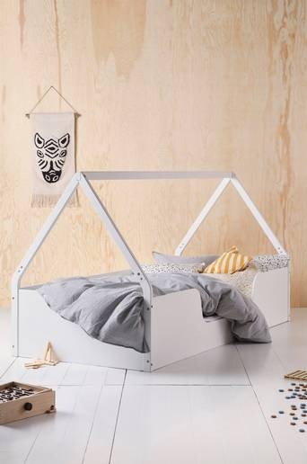 Sängram med stomme av massiv furu, sidor av MDF och ribbotten av obehandlad plywood. Både furu och MDF är FSC-märkt. Färgen är vattenbaserad. Sängen är som en mysig koja med härlig tältkänsla om du kompletterar med textiltältet som finns att köpa till. Ena långsidan har en sänkt kant så de små barnen kan klättra i/ur själva. Med en mysig säng blir det roligare att gå och lägga sig, för vem vill ha tråkigt? Komplettera med en madrass storlek 90×200 cm, madrass ingår ej. Produkten är certifierad med FSC vilket innebär att den består av trä som är avverkat från ett ansvarsfullt skogsbruk som tar hänsyn till människor och miljö. Licensnummer & testinstitut: SAI-COC-002431 SAI Global. Material: Furu, MDF och plywood av furu. Storlek: Bredd 96 cm, längd 206 cm, sidans höjd 40 cm, sidans höjd vid öpppningen 17 cm, totalhöjd 110 cm. Bäddmått: Bredd 90 cm, längd 200 cm. Dimension stommen för taket 5×5 cm. Bredd ribbor i botten 6,9 cm. Maxvikt: 90 kg. Maxtyngd takribba: 60 kg. Skötselråd: Torkas av med lätt fuktad trasa. Tips/råd: Med många kuddar och ett mjukt överkast blir det en mysig hörna dagtid.