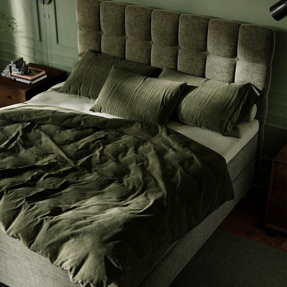 Ekens Essens Kontinentalsäng är en stilren skandinavisk säng med exceptionell komfort. Den eleganta kvalitetssängen finns i flera storlekar och färger, med ett brett urval av tillbehör som gör det enkelt att anpassa efter individuella behov.Komforten i Essens bygger på ett tekniskt avancerat 7-zon resårsystem i den övre madrassen, där 15 cm höga pocketfjädrar är strategiskt placerade för att ge optimal tryckavlastning. Systemet är uppdelat i zoner för axlar, svank och höfter, med varierad fjäderspänning mellan zonerna för mjukare övergångar. Resultatet är en följsam madrass som erbjuder sömlös sovkomfort utan märkbara skarvar.ProduktegenskaperResårmadrass – Övre stoppning: Polyeter 28 mm 30 kgResårmadrass – Resår: Pocket 7-zoner 15cmResårmadrass – Nedre stoppning: Polyeter 28 mm 30 kgUnderbädd – Stoppning: Polyeter 20 mmUnderbädd – Resår: Pocket 13 cmRam: 12 cm FSC-certifierad träram gran/furuGarantiRam- eller resårbrott som ett resultat av material- eller tillverkningsfel täcks av 20 års garanti. TvättrådSängen tyg kan skumtvättas.Tillverkarens kontaktuppgifterVarumärke: EkensLeverantör: Hilding Anders Sweden ABTillverkare: Hilding Anders Sweden AB, ECIT 5562897941Address: Hilding Anders Sweden AB, Alvestavägen 77, 331 76 Rydaholm, SverigeE-postaddress: order@hildinganders.com