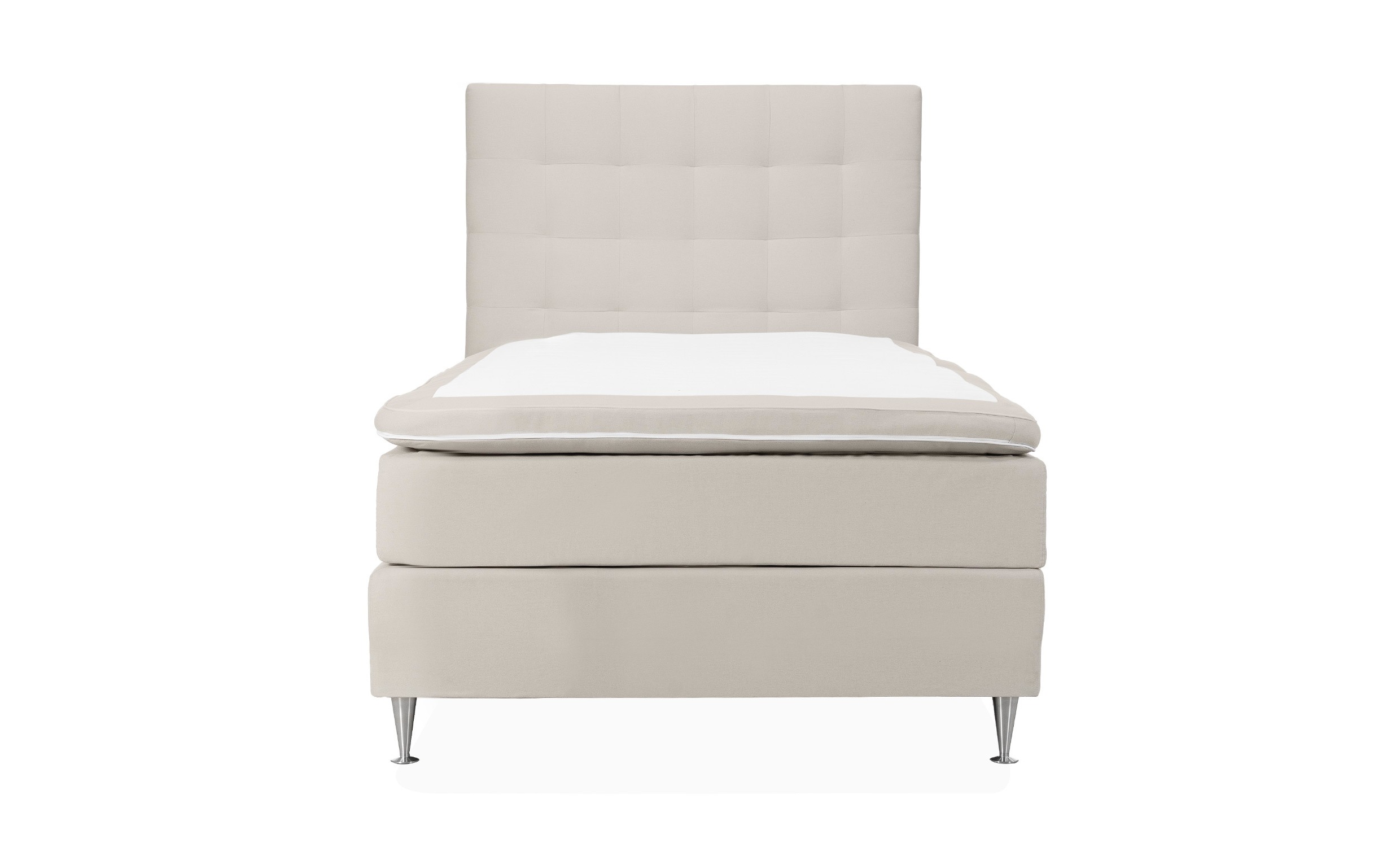 Komplett sängpaket som inkluderar Värmdö Premium Säng och Värmdö Premium Sänggavel. Värmdö är en lyxig kontinentalsäng av premiumkvalitet med hög komfort. Den finns i flera stilrena färger som är lätta att inreda med. Med en totalhöjd på hela 70 cm inger Värmdö en gedigen känsla av kvalitet, och dess silverfärgade champagneben förstärker den känslan ytterligare. Sänggaveln är pampig, djuphäftad och av premiummodell. Värmdö är en klassisk modell som passar perfekt i alla sovrum. Design & komfortVärmdö har en medelmjuk komfort men exakt hur komforten upplevs är dock väldigt individuellt och beror på vikt samt kroppsform. Resårmadrassen består av kallskum 22kg/m3 och har ett kraftigt bonellfjädersystem, vilket ger sängen en god stabilitet. Mellanmadrassen är 21 cm tjock och består av kallskum 30kg/m3. Denna har 7zon-flex pocketfjädring som anpassar sig efter din kropp och ger bra avlastning. Bäddmadrassen har en latexkärna omsluten av mjukt vadd och en tjocklek på 7 cm.Stommens massiva träram ger stadga och lång hållbarhet.Sängbenen är gjorda av silverfärgad metall och har en vacker och klassisk champagneform. Dessa monteras på sängen med M8-bult.Gaveln är djuphäftad och hela 14 cm tjock.Sänggaveln står på två svarta plastben, och placeras enkelt mellan säng och vägg.Upphängningsanordning medföljer ej.Tyg & skötselSänggaveln, resårmadrassen och mellanmadrassen är klädda i ett slitstarkt tyg av 100% polyester.Martindale 100 000, pilling 4/5, ljusfasthet 4/5, vikt 400 g/m2Bäddmadrassen är klädd i ett mjuk och följsamt jerseytyg. Klädseln på resårmadrassen är ej avtagbart. Vi rekommenderar att impregnera denna med textilskydd och använda textilrengöring vid fläckar.Bäddmadrassens och mellanmadrassens klädsel är avtagbara men kan inte maskintvättas. Kemtvätt rekommenderas.Leverans & förpackningLevereras delvis monterad för enklare transport och hantering. Gaveln levereras monterad med undantag för benen som smidigt skruvas dit i de förborrade hålen.Antal förpackningar: 2 stFörpackningsmått: 120x60x212 cm / 130x132x15 cmVikt: 80 kg / 23 kgNotera att extrabilderna visar sängpaketet i färgen offwhite och i storleken 180.