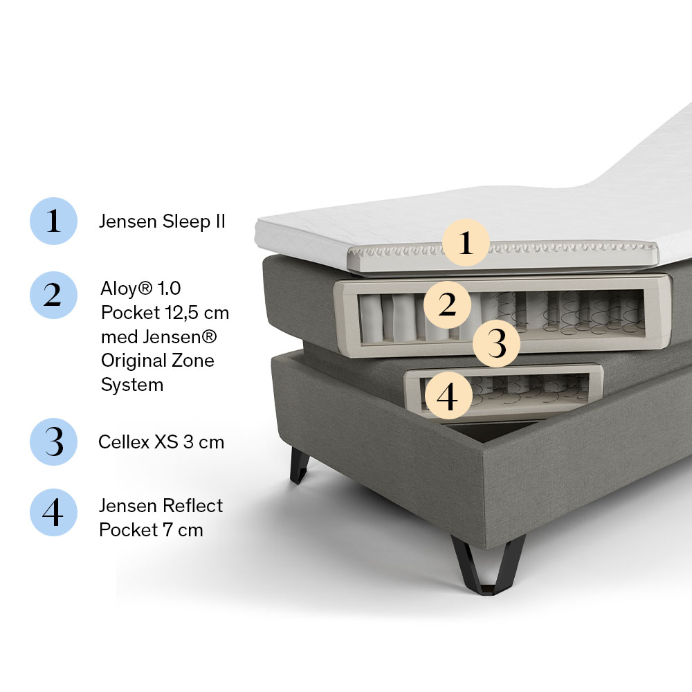 Jensen Diplomat Aqtive II Ställbar Säng 90×200 Grå