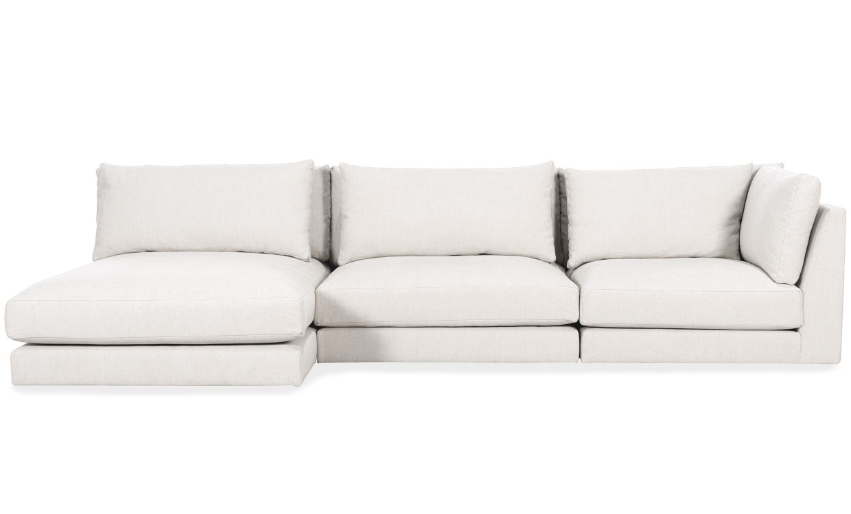 Lyon är en serie med stilfulla moduler i mellanmjuk komfort som förhöjer designkänslan i ditt hem och som enkelt kan justeras efter rum och smak, även efter tid. Med hjälp av en vändbar hörnmodul, en mittmodul/fåtölj, en divanmodul och en fotpall får du möjlighet att bygga ihop din drömsoffa precis så stor eller liten som du önskar. Denna kombination består av en divanmodul, en mittmodul och en hörnmodul. Design & komfortLyon har en mellanmjuk sittkomfort med sköna ryggkuddar att luta sig mot.Sittplymåerna innehåller bonellfjädring, kallskum 35 kg/m3 och fjäder. De större ryggkuddarna samt sidokudden innehåller silikonfiber och rivet kallskum. De mindre ryggkuddarna innehåller silikonfiber.Stomme av spånskivor, träfiberskivor, furu och bok.Ben i svartlackad bok. Sex ryggkyddar (102x17x45 cm 3 st och 81x13x45 cm 3 st) och en sidokudde (81x17x45 cm) ingår. Ett fäste per modul ingår.Tyg & skötselKlädsel i 60% bomull och 40% linne, ett formbeständigt och slitstarkt material med mjuk och härlig linnekänsla.Vikt 370 g/m2, martindale 30 000, ljusfasthet 5/5, pilling 4/5Klädseln är avtagbar på ryggkuddar, sittkudde samt sidokudde.Kemtvätt rekommenderas. Vid mindre uppkomna fläckar tryck varsamt med en mjuk lätt fuktad trasa eller mild textilrengöring, gnid inte. Testa först på ett litet parti som inte är så synligt och följ produktens rekommendationer. Leverans & förpackningSoffan levereras modul för modul. Modulerna levereras monterade.Antal förpackningar: 3 stFörpackningsmått: 105x105x 69 2 st / 105x155x69 cmVikt: 33 kg / 41 kg / 44 kgNotera att extrabilderna visar soffan i färgen beige samt att extrabilderna visar soffan i färgen beige.