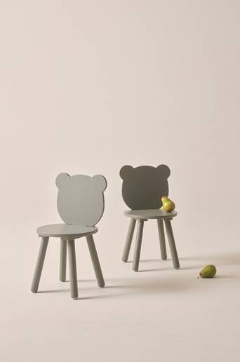 2-pack barnstolar av massiv furu och MDF med målad yta. Sitsen är rund medan ryggstödet har siluetten av ett björnhuvud. De rundade benen är utställda vilket gör stolen stabilare, ifall någon kanske vill klättra upp? Viss montering krävs. Monteringsanvisning medföljer. Material: Furu och MDF. Storlek: Höjd 58,1 cm, bredd 30 cm, djup 30 cm. Skötselråd: Torkas av med lätt fuktad trasa. Tips/råd: Ett litet barnbord tillsammans med stolarna BEARY ger en mysig sittplats i rätt format för de minsta.