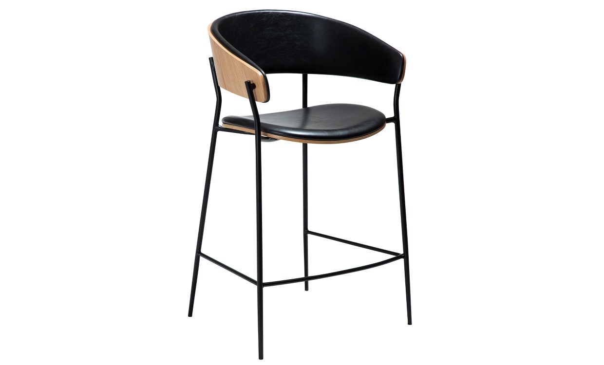 Crib är en barstol med en tidlös design som blandar klassisk och modern stil. Ryggstödet i fanér är klätt på insidan och formas till mjuka armstöd vilket ger både komfort och elegans. Benen är smala och ger stolen ett lätt och stilrent uttryck.Observera att stolarna säljes i 2-pack, priset är per styck. Design & egenskaperBarstol i tidlös design från Dan Form.Sitthöjden på stolen är 63,5 cm.Stolen är tillverkad i konstläder, ekfaner och har svarta metallben. Leverans & förpackningLevereras omonterad.Antal förpackningar: 1 stFörpackningsmått: 63x105x56 cmVikt: 8 kg
