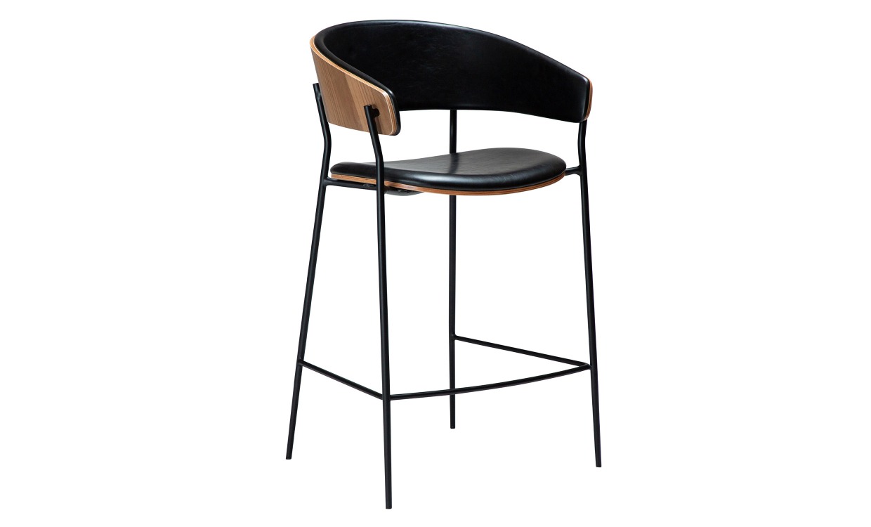 Crib är en barstol med en tidlös design som blandar klassisk och modern stil. Ryggstödet i fanér är klätt på insidan och formas till mjuka armstöd vilket ger både komfort och elegans. Benen är smala och ger stolen ett lätt och stilrent uttryck.Observera att stolarna säljes i 2-pack, priset är per styck. Design & egenskaperBarstol i tidlös design från Dan Form.Sitthöjden på stolen är 63,5 cm.Stolen är tillverkad i konstläder, valnötsfanér och har svarta metallben. Leverans & förpackningLevereras omonterad.Antal förpackningar: 1 stFörpackningsmått: 63x105x56 cmVikt: 8 kg