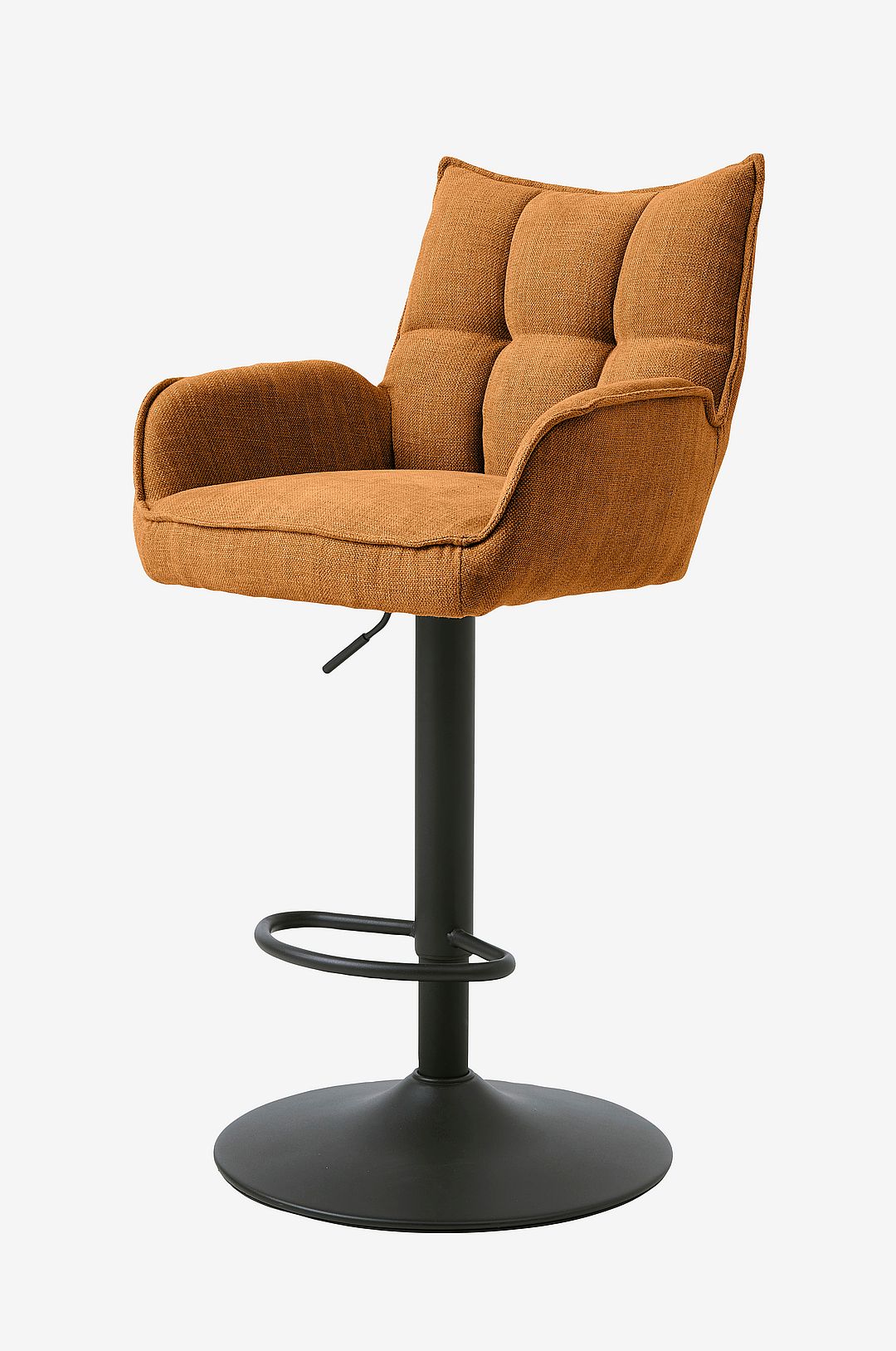 Denna barstol har en skandinavisk design som enkelt passar in i alla hem. Den har en justerbar sits och ryggstöd och en elegant trumpetbas i svart metall som ger stabilitet och modern estetik. Sitthöjden kan justeras mellan 67-82 cm.