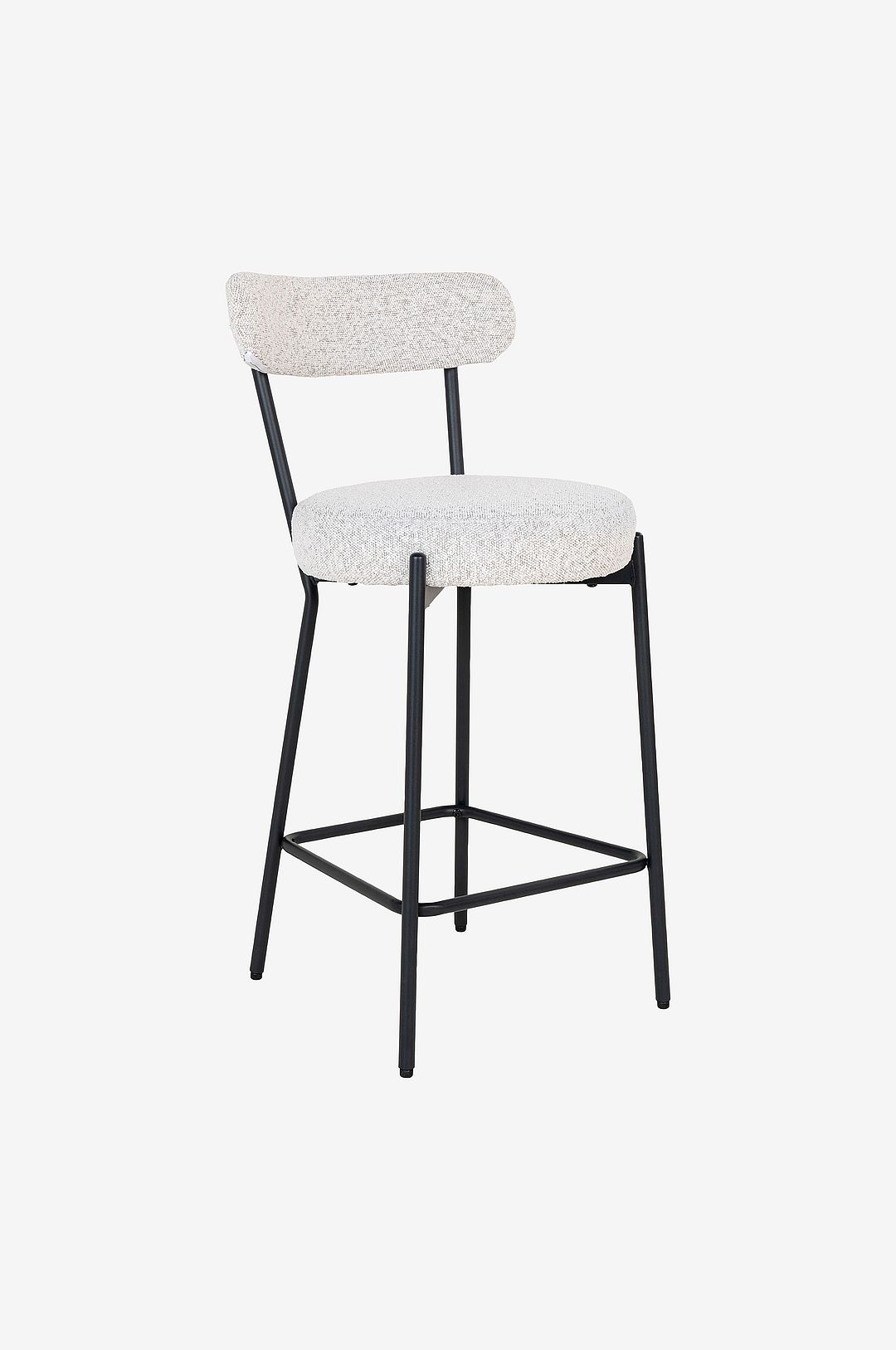 Barstol, vit bouclé med svarta ben