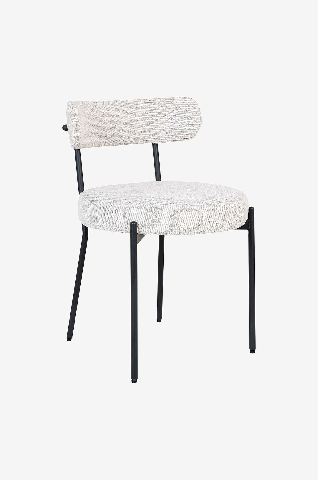 Matstol, vit bouclé med svarta ben