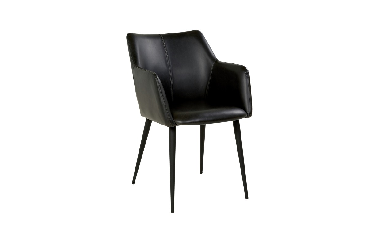 Mitch är en vacker stol med hög komfort på grund av den lätt stoppade dynan och dess armstöd. Stolen är klädd i konstläder vilket gör ytan lätt att torka av med en fuktig trasa. Mitch passar perfekt vid matbordet men kan även användas vid skrivbord eller i hall. Stolen har en stilren design och andas skandinaviska toner.Notera att stolen säljs i set om två men att priset är per styck. Design & egenskaperMatstol i stilren och skandinavisk design.Mitch har en hög komfort och har en stoppad dyna samt armstöd.Klädd i konstläder.Läcker svart färg.Säljs i 2-pack.Leverans & förpackningLevereras omonterad.Antal förpackningar: 2 stFörpackningsmått: 71x57x59Vikt: 18,5 kg
