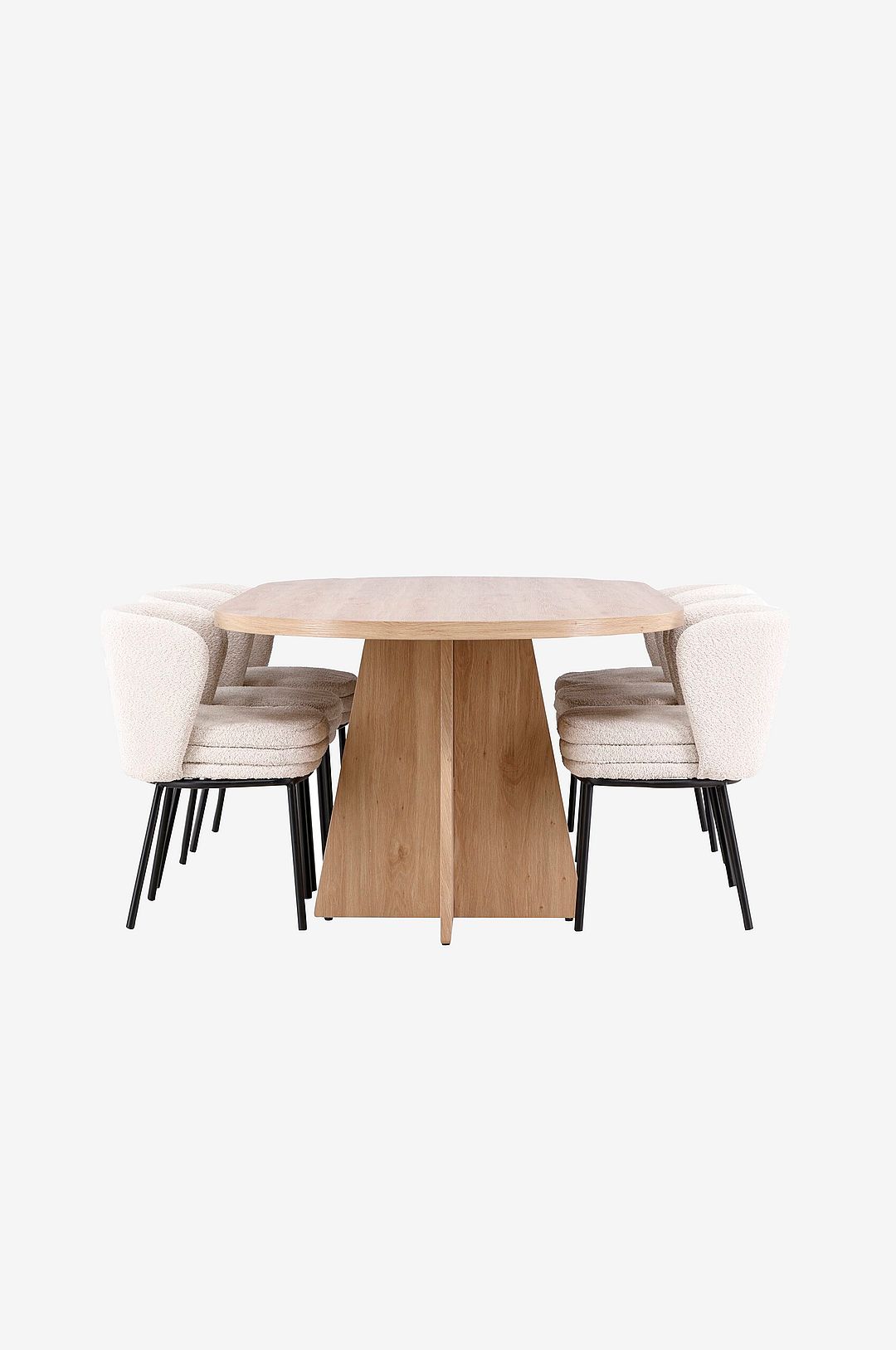 Skapa en elegant och inbjudande matplats med vår exklusiva matgrupp som kombinerar elegant design och hög funktionalitet. Upptäck den enkla skönheten och den eleganta designen hos matstolen agnes. Med en sits i bouclé och eleganta stålben erbjuder agnes en modern och sofistikerad estetik som kompletterar alla inredningsstilar. Den mjuka och strukturerade sitsen i bouclé ger en varm och inbjudande känsla, medan stålbenen ger stolen en modern touch. Agnes skapar en harmonisk atmosfär och ger din matsal eller ditt kök en imponerande visuell effekt. Med sin eleganta design och bekväma sits är matstolen Agnes det perfekta valet för att samlas runt matbordet med familj och vänner. Ge ditt hem en touch av enkel elegans och skapa en mysig atmosfär med agnes matstol. Upptäck bootcut-matbordets skönhet och funktionalitet – det perfekta valet för att skapa minnesvärda stunder med vänner och familj. Med sina imponerande mått på 230×115 cm erbjuder bordet gott om plats för sociala middagar och långa samtal. Matbordet bootcut ger en jordnära känsla till ditt rum. Dess skandinaviska design och rena linjer bidrar till en elegant och modern atmosfär i ditt hem. Skapa en inbjudande atmosfär och låt bootcut-matbordet vara centrum för dina sociala sammankomster. Oavsett om det gäller familjemiddagar eller festliga tillfällen kommer det här imponerande bordet att göra varje tillfälle minnesvärt. Ge ditt hem en touch av enkel elegans och samhörighet med bootcut-matbordet – en perfekt plats att samla dina nära och kära och skapa varaktiga minnen tillsammans.