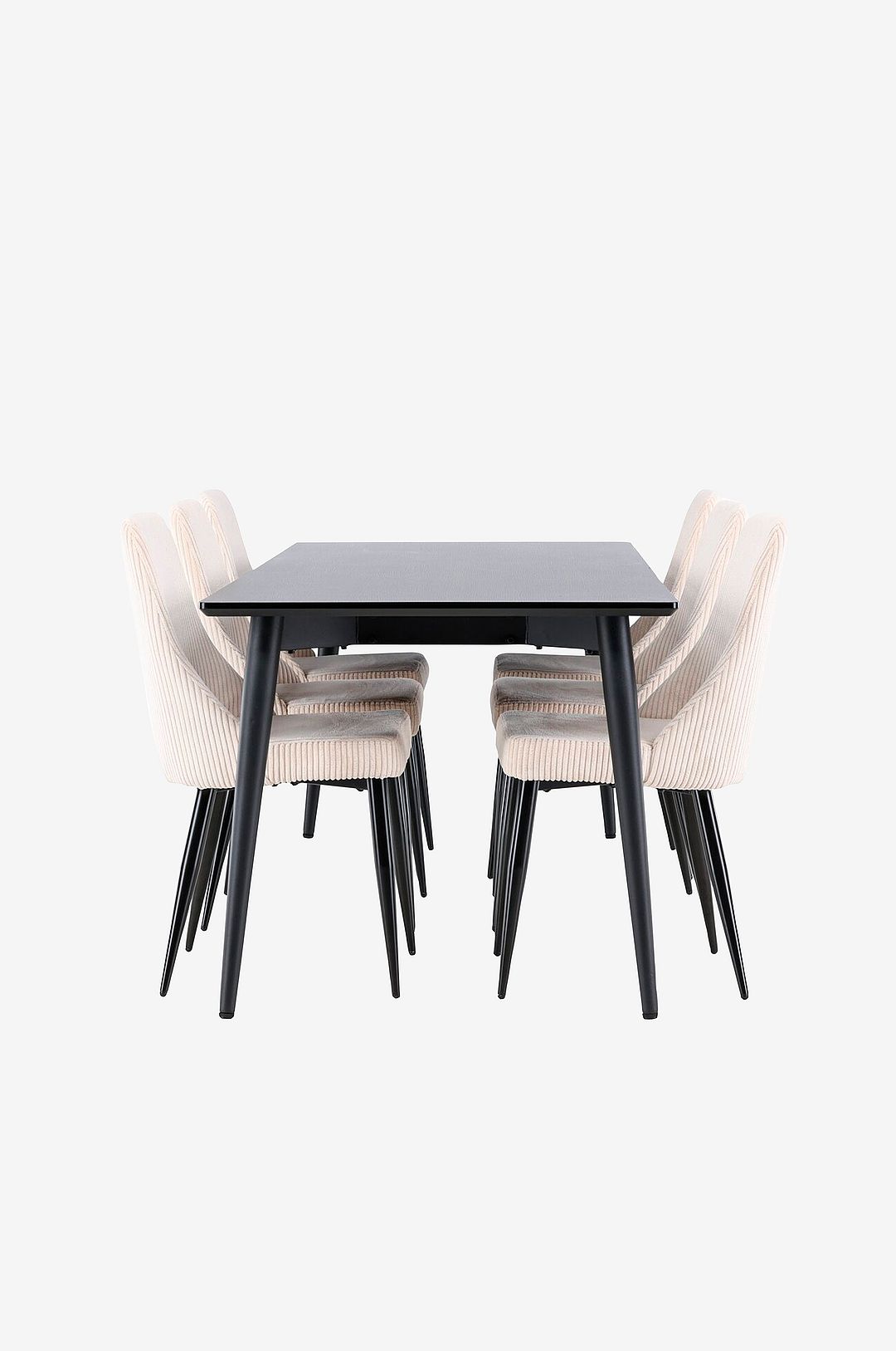 Upptäck den perfekta matsalsgruppen som kombinerar stil och komfort med robusthet och elegans. Matstolen leone och matbordet ellis skapar tillsammans en inbjudande och sofistikerad atmosfär i din matplats. Stolen är fsc®-certifierad (fsc®c177288), vilket innebär att den består av trä från ansvarsfullt skogsbruk, skogsbruk som tar hänsyn till människor och miljö. Leone är matstolen som kombinerar stil och komfort på ett elegant sätt. Leone är tillverkad i sammet med stålben och erbjuder en perfekt balans mellan funktion och estetik. Leone ger en varm och inbjudande känsla, vilket gör den till ett perfekt komplement till ditt matbord eller kök. Dess enkla design gör den mångsidig och passar perfekt in i olika inredningsstilar. Oavsett om det är för dagliga måltider eller speciella tillfällen kommer Leone att erbjuda en bekväm och elegant plats att sitta på. Ge din matplats en touch av elegans och komfort med matstolen leone som gör måltiderna till ett nöje. Med sin bekväma design och stilrena estetik blir leone en älskad del av ditt hem. Utforska ellis – det robusta matbordet som kommer att bli navet i din matmiljö. Med sin design ger ellis en elegant och modern touch till ditt rum. Bordet är tillverkat med stålben och en bordsskiva i mdf, vilket ger en perfekt balans mellan robusthet och stil. Med sina generösa mått på 230×85 cm är ellis-bordet perfekt för sällskapliga middagar och sammankomster med vänner och familj. Dess robusta konstruktion och eleganta design gör det till en pålitlig möbel som passar för alla tillfällen. Oavsett om du använder det för att avnjuta en familjemiddag eller för att bjuda in till fest kommer ellis att skapa en trendig och elegant atmosfär i ditt hem. Uppgradera din matplats med det eleganta och robusta ellis-matbordet.